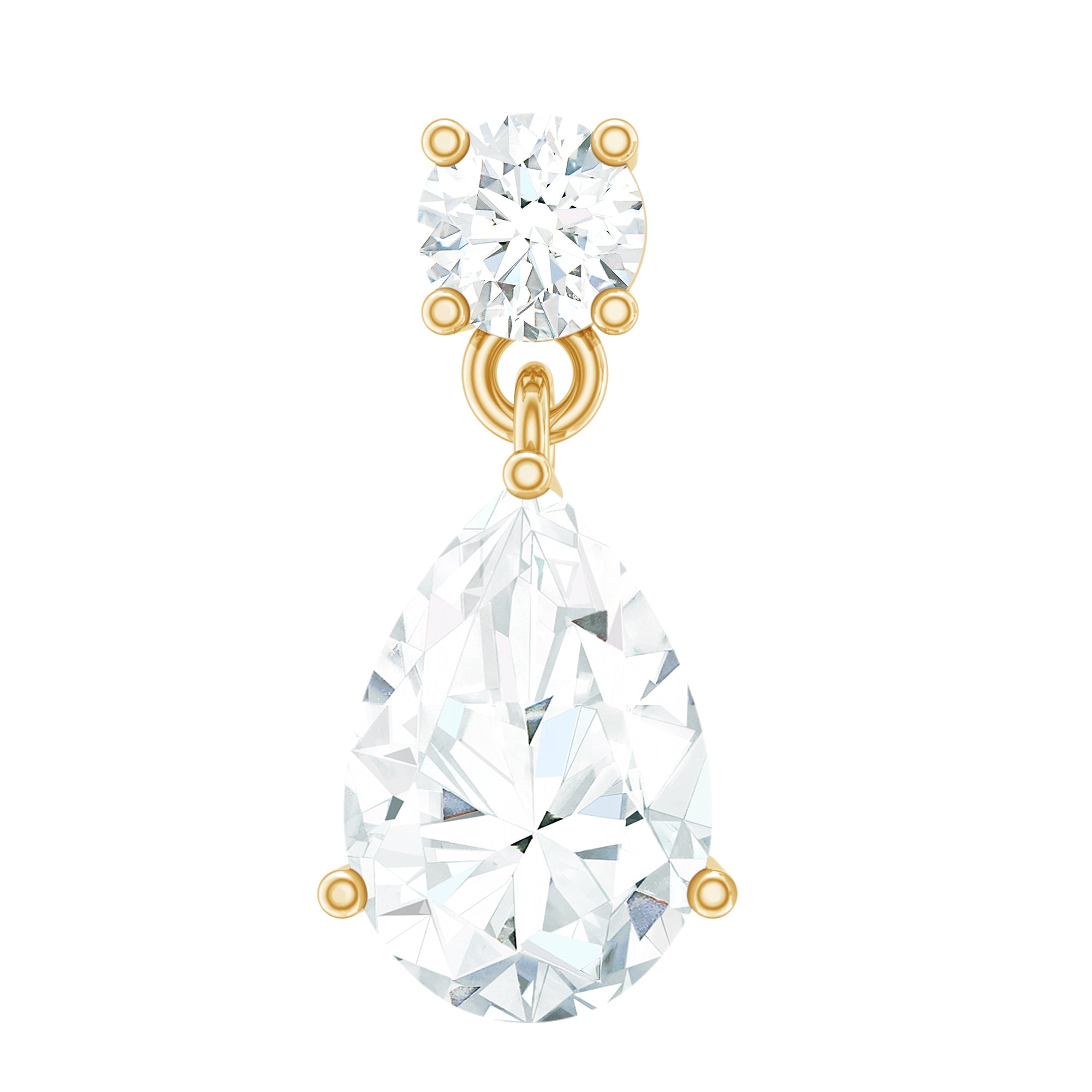 Pear and Round Cut Diamond Stud Drop Helix Earring ‐ Lab - ( EF-VS ) / 10K Yellow Gold / Select Option