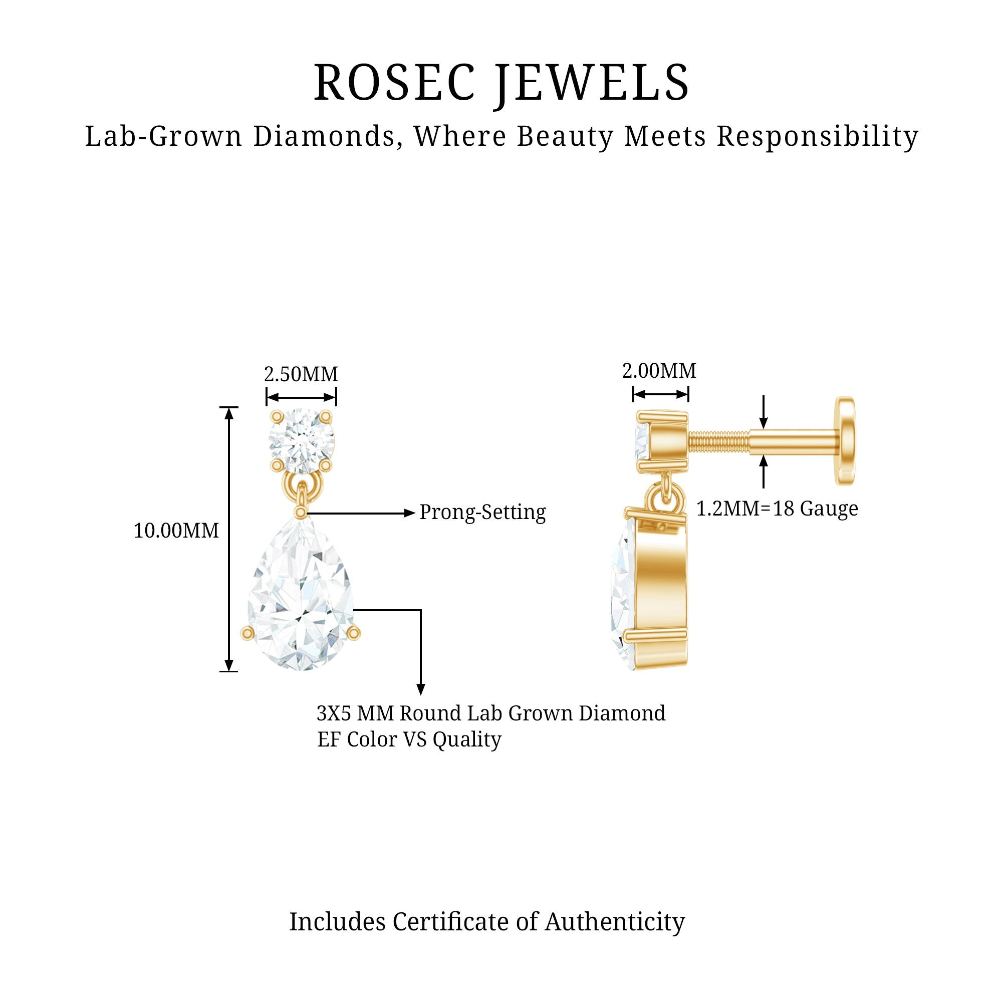 Pear and Round Cut Diamond Stud Drop Helix Earring ‐ Lab - ( EF-VS ) / 14K Yellow Gold / Flat Back 5.5 MM