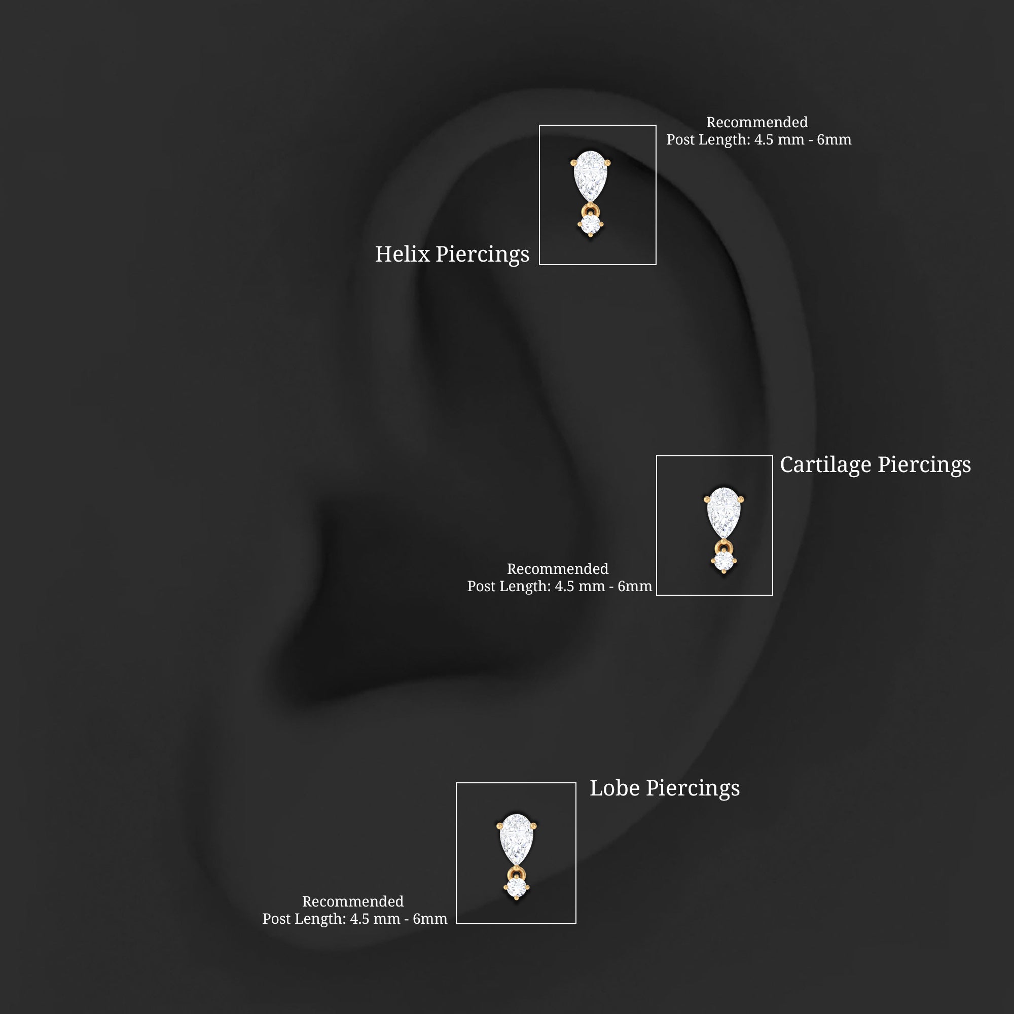 Pear Diamond Drop Earring for Helix Piercing ‐ Natural - ( HI-SI ) / 18K White Gold / Flat Back 6.0 MM