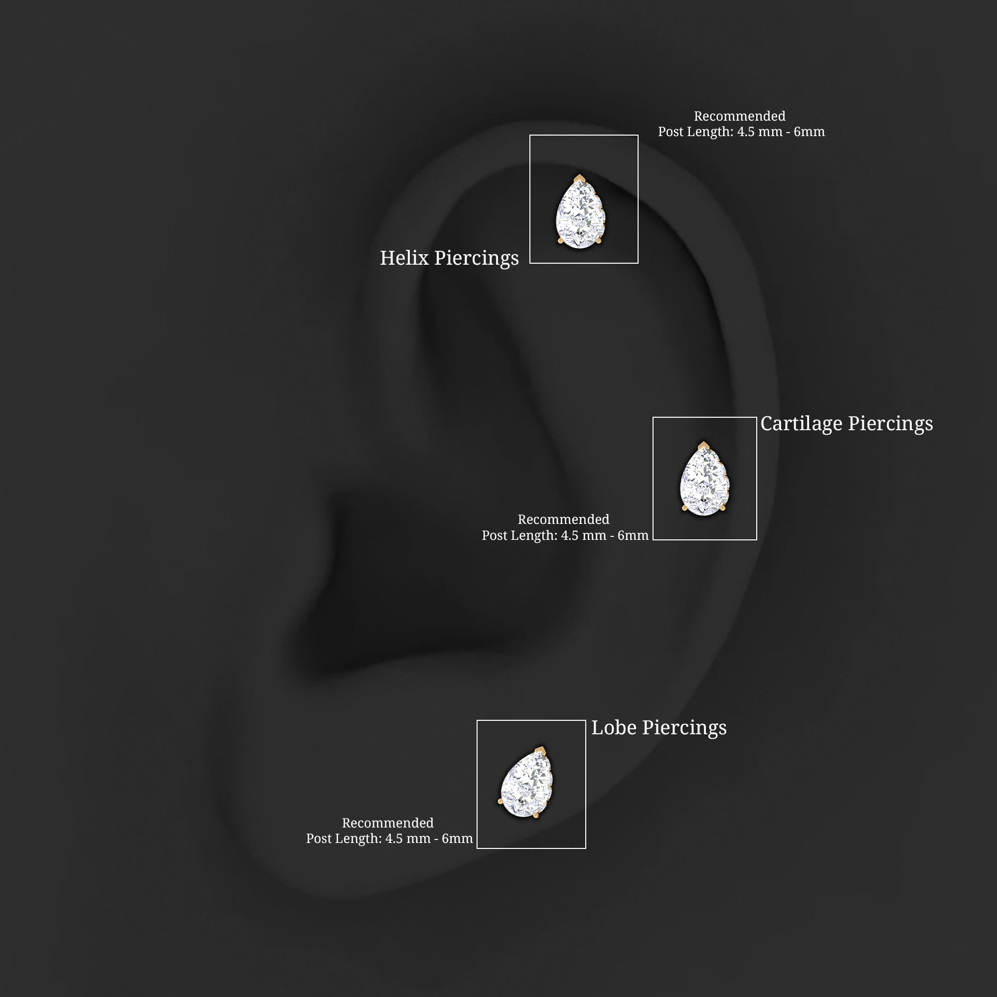 The simple and trendy Solitaire Cartilage Earring is embellished with Pear Shape Moissanite secured in Prong Setting while Round Cut Moissanite is studded on its side. Wear this Moissanite Teardrop Earring to stand out from the crowd while enhancing your Helix, Conch, Cartilage, or Upper Lobe Piercing.