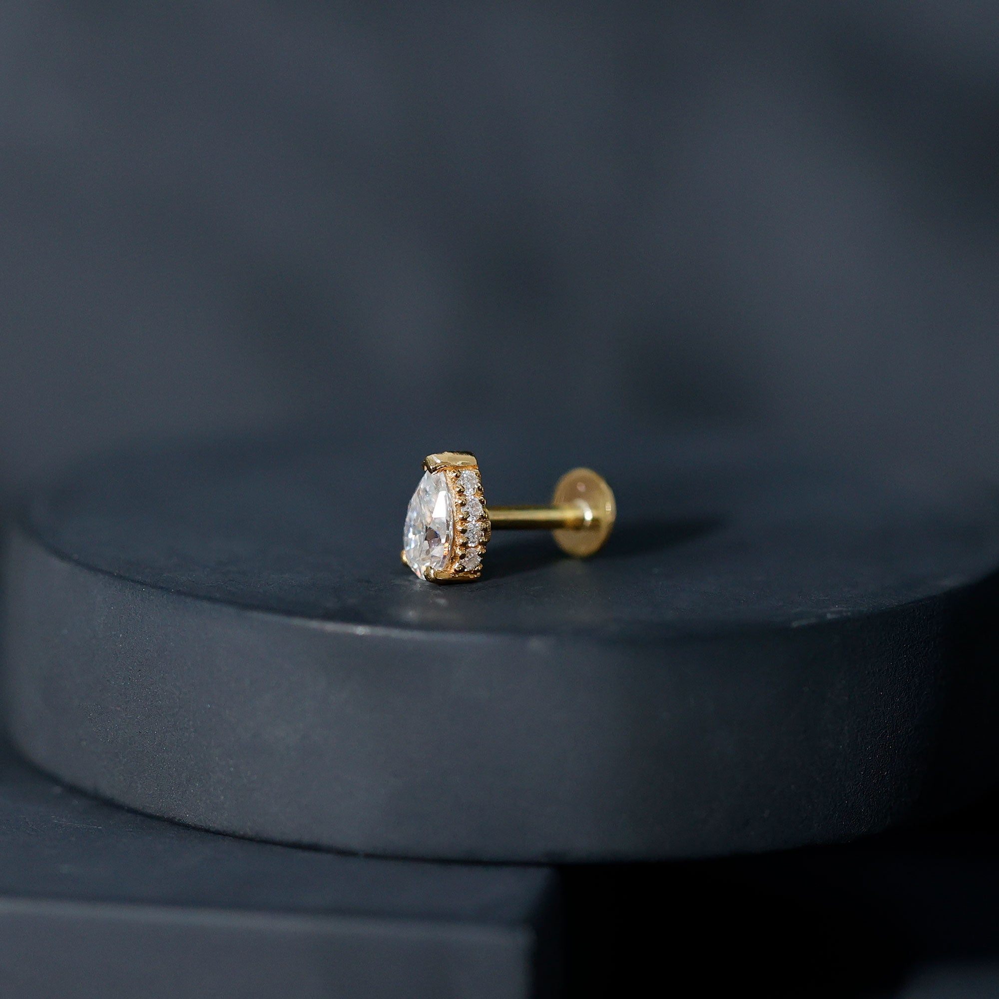 Pear Shaped Moissanite Solitaire Cartilage Earring ‐ D-VS1 / 18K Yellow Gold / Flat Back 5.0 MM
