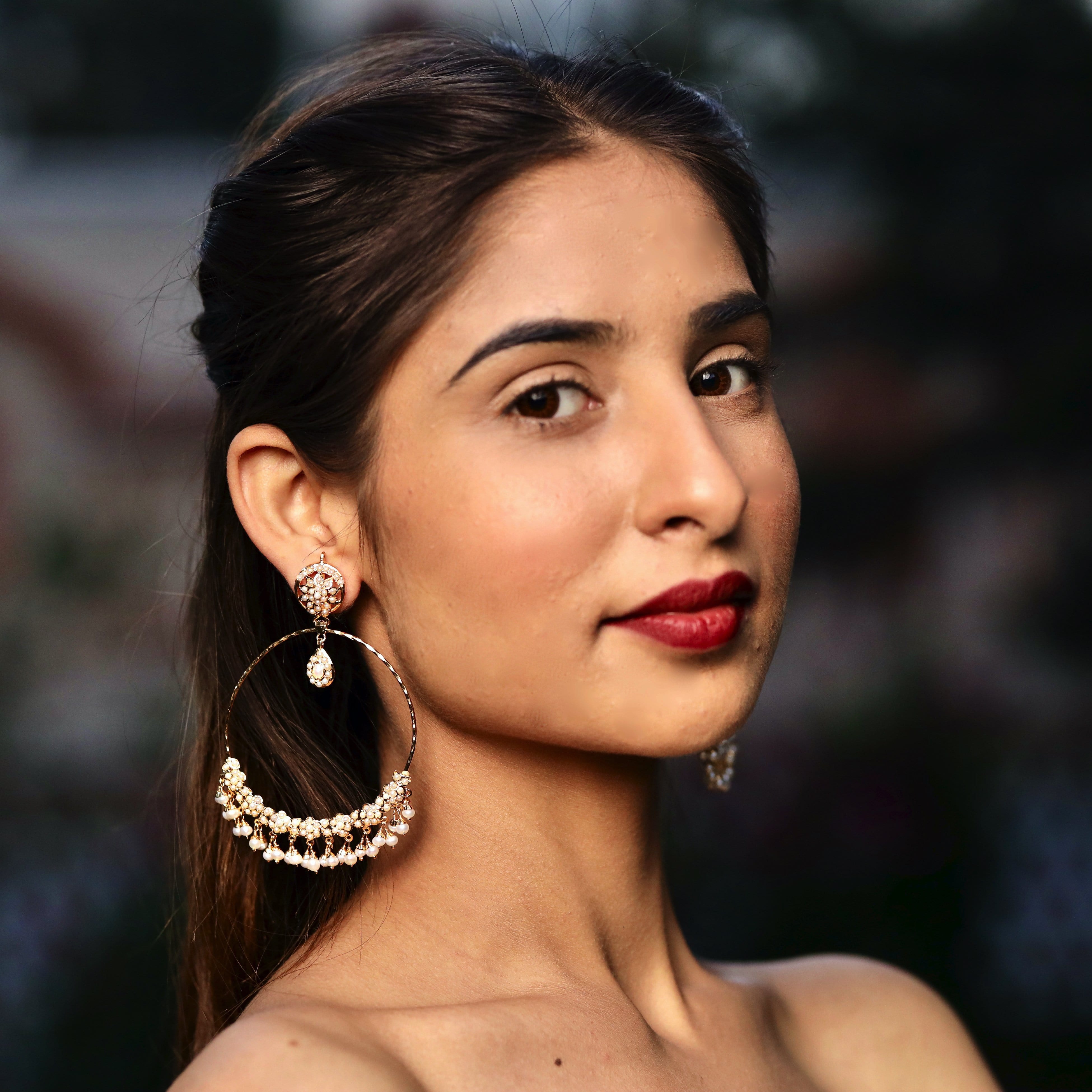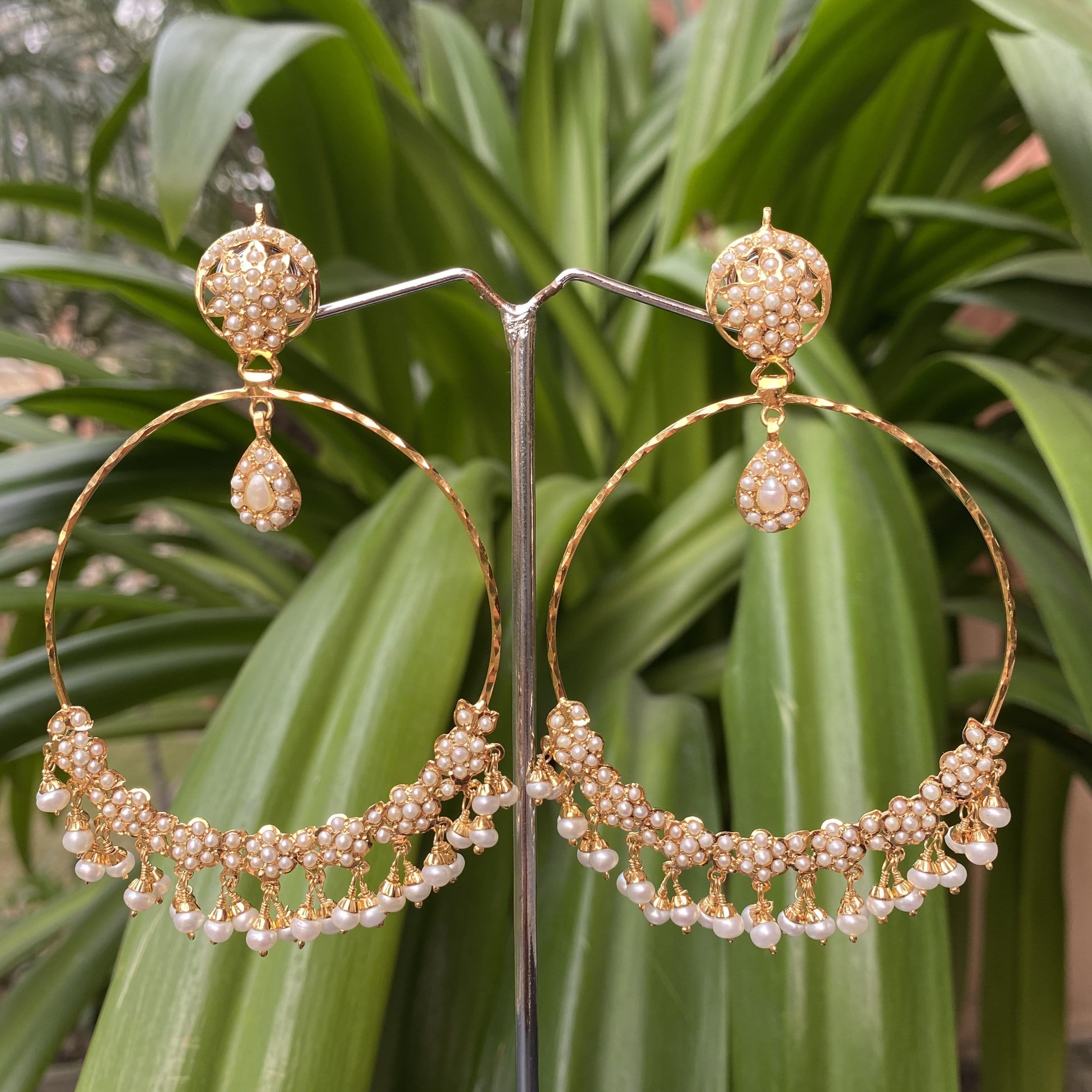 Pearl Jadau Chandbali Earrings in Gold Plated Silver