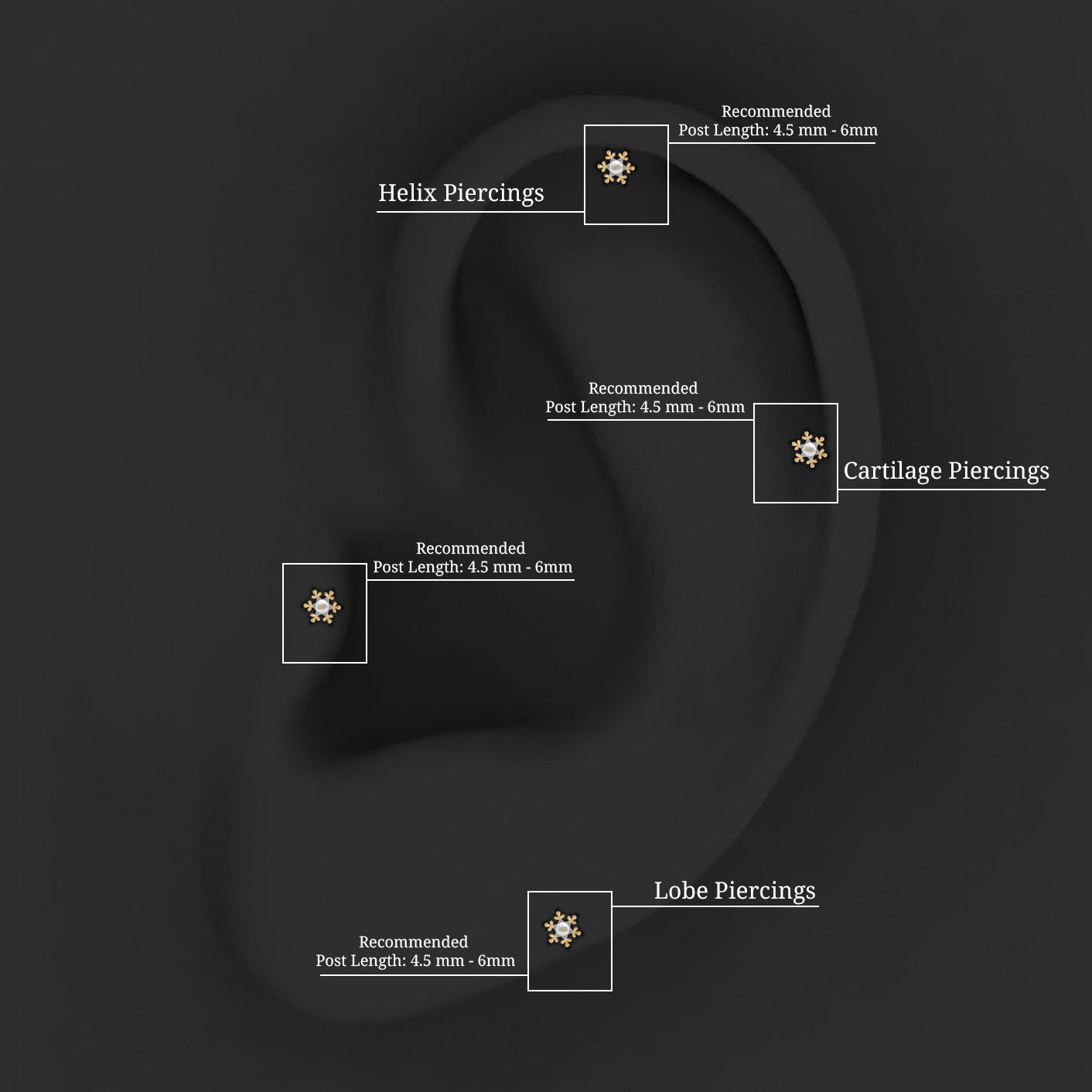 Pearl Solitaire Snowflake Earring for Helix Piercing