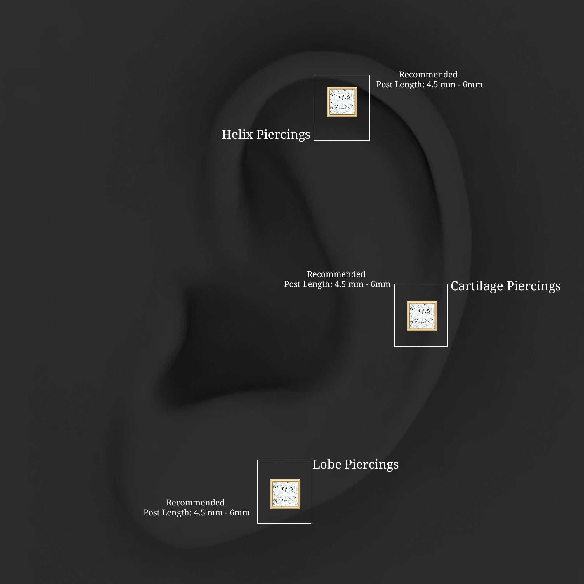 Cant get enough of the geometric charm of this Diamond Conch Earring. If you have space for an additional piercing earring, this will definitely be your favorite choice. Its a clever addition to your jewelry collection. This pierced earring showcases a princess cut diamond secured by a bezel setting. Made from Hallmarked Metal, this diamond solitaire earring is a durable option and offers a unique and eye-catching way to express your style in the city. Surprise your loved one with this square diamond earring as a gift for an anniversary, birthday, graduation, or Christmas. The best feature is its flat back closure, which ensures both security and comfort. You can mix and match it with other earrings to showcase your personal fashion style. This Helix Stud Earring shines luxuriously with a certified diamond that delivers outstanding brilliance, making your appearance truly remarkable. It is carefully handcrafted to enhance your ear and will come in a premium packaging box for safekeeping, along with a certificate of authenticity.
