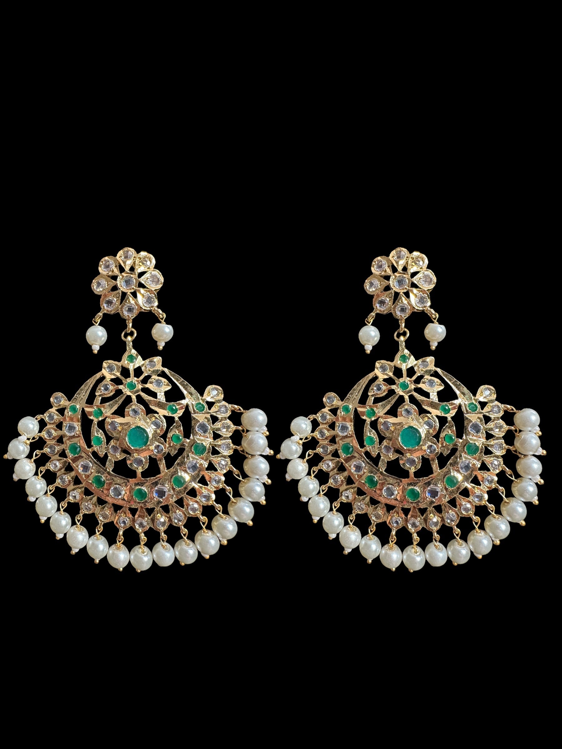 Made using semi precious polki with shell pearls and 22ct gold plating.