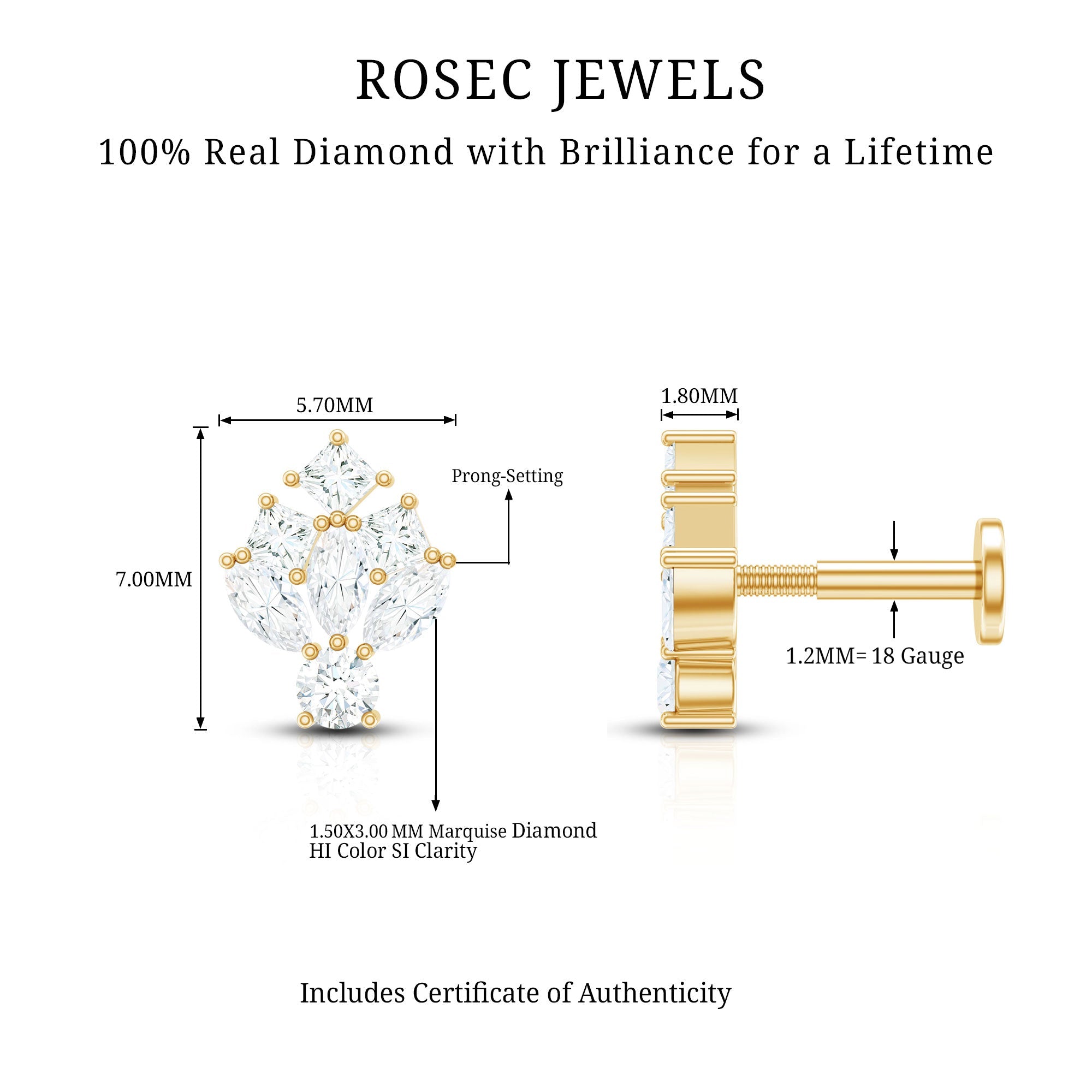 Count on this Diamond Earring for Cartilage Piercing to make any outfit look trendy and timeless at once. Featuring cluster of marquise, round, and princess cut diamonds exuding modern-classic vibe perfect for mixing and matching. This versatile diamond earring is perfect for various piercings like Helix, Cartilage, Tragus, Conch, or Upper Lobe Piercing. Elevate your style by pairing this Ear Piercing Stud with other piercings, ensuring you stand out in any crowd. In case you missed it, ear stacking is all the rage! Go with this unique Diamond Earring to make everyone a fan of your unique style.