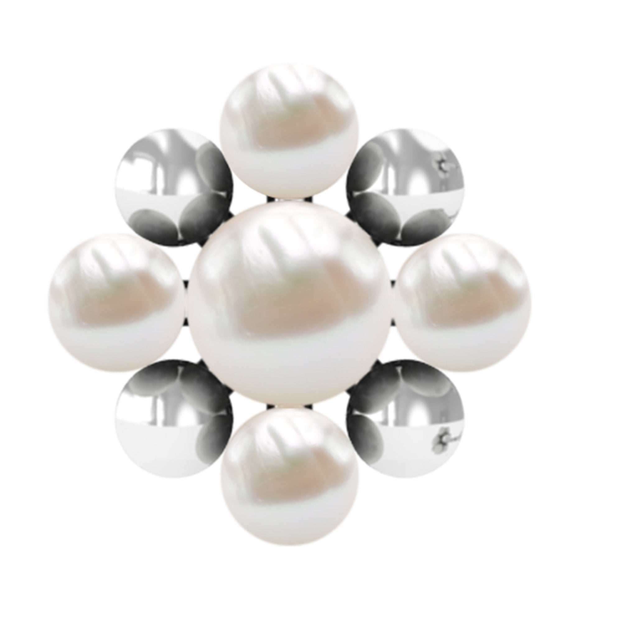 Real Freshwater Pearl Gold Beaded Flower Cartilage Earring ‐ AAA / 14K White Gold / Flat Back 7.0 MM