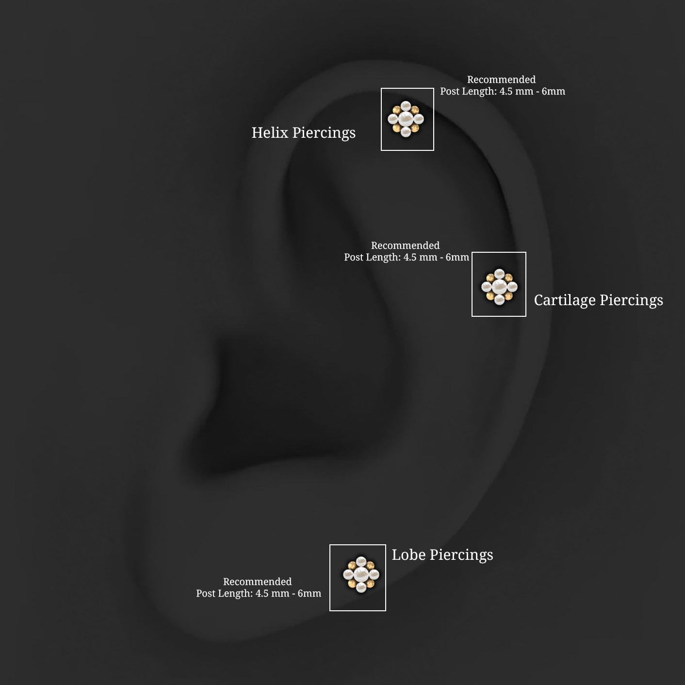 Real Freshwater Pearl Gold Beaded Flower Cartilage Earring ‐ AAA / 18K White Gold / Flat Back 6.0 MM