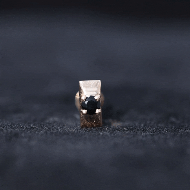 Round Cut Solitaire Black Onyx Gold Bar Tragus Earring ‐ AAA / 18K White Gold / Select Option