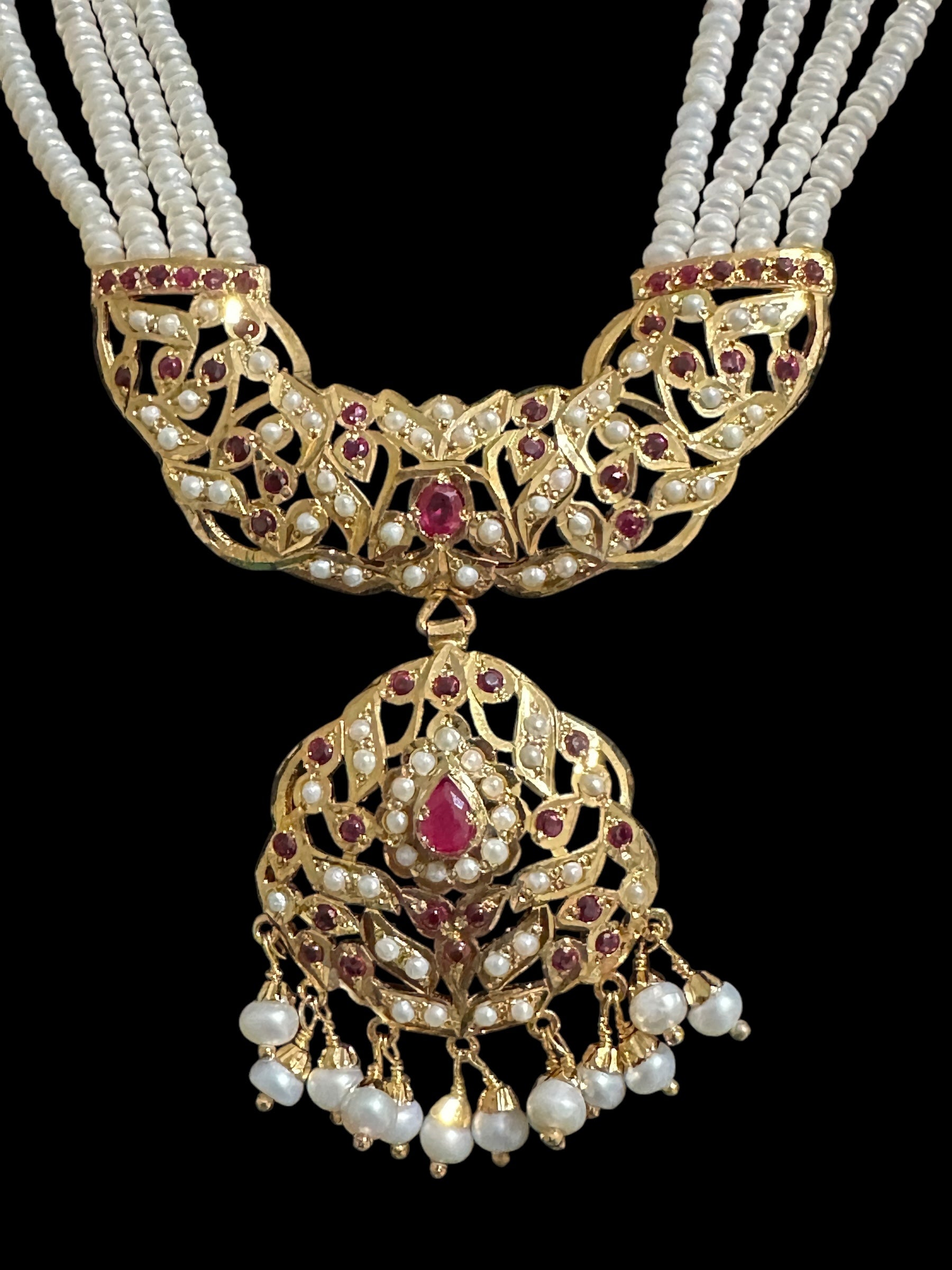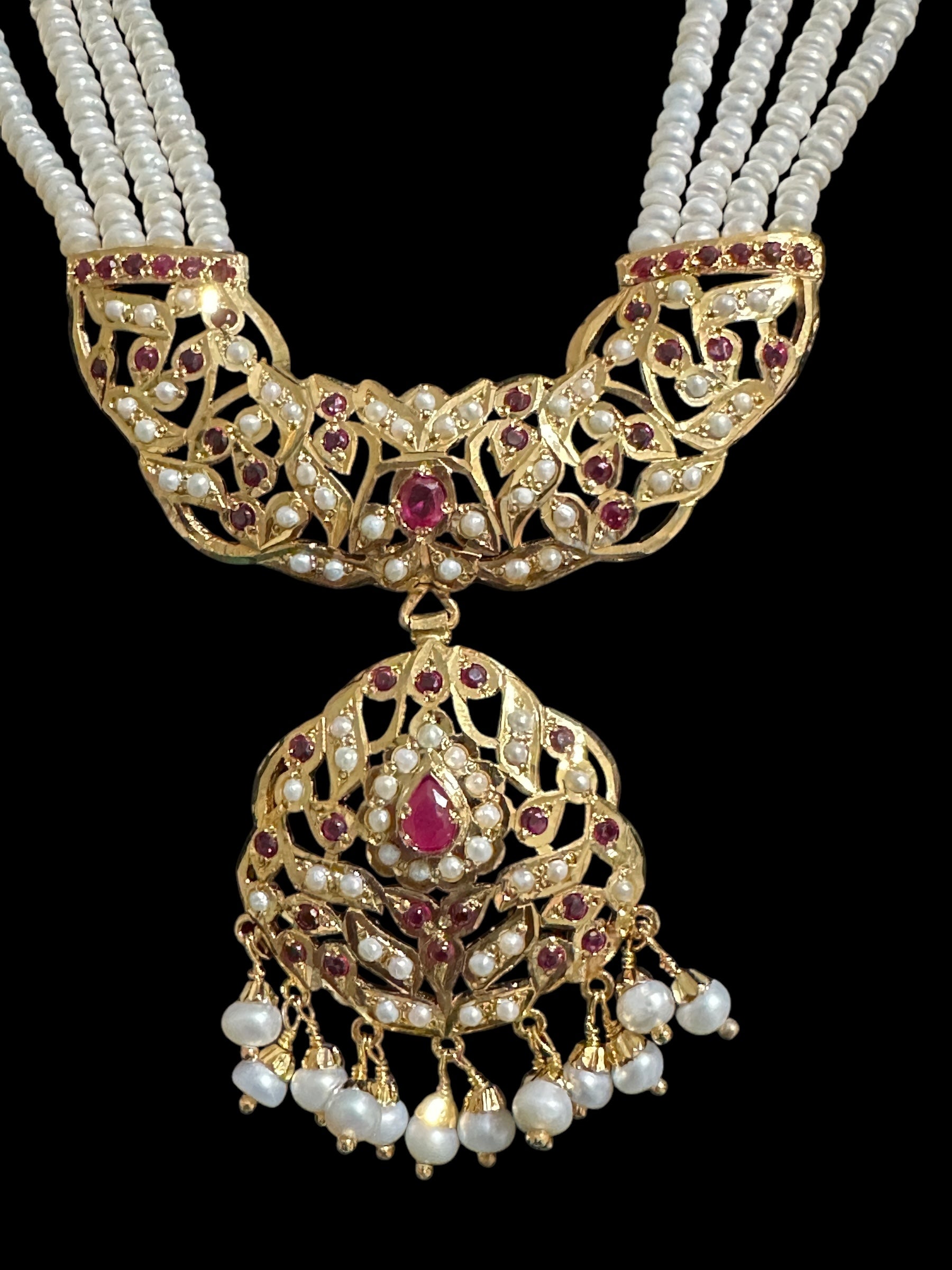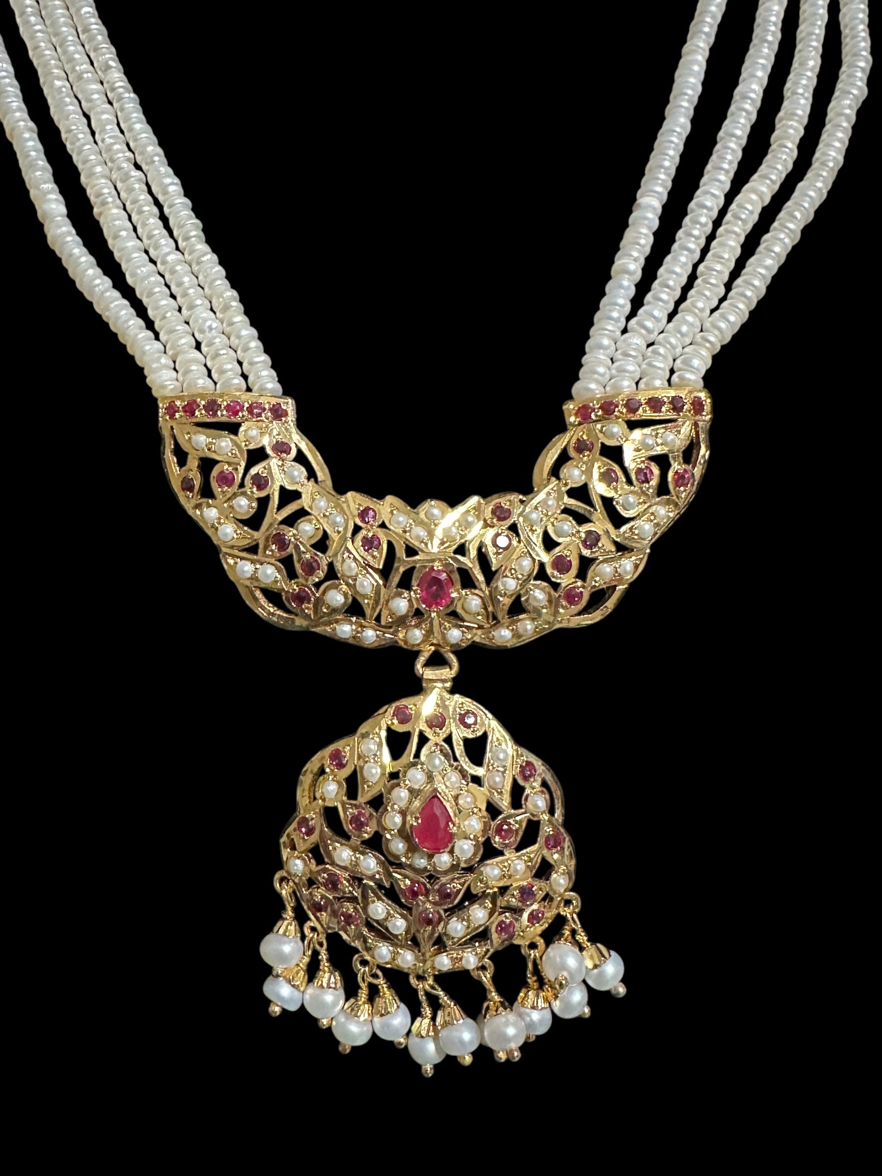 Ruby pearl gold plated silver necklace set ( READY TO SHIP )
