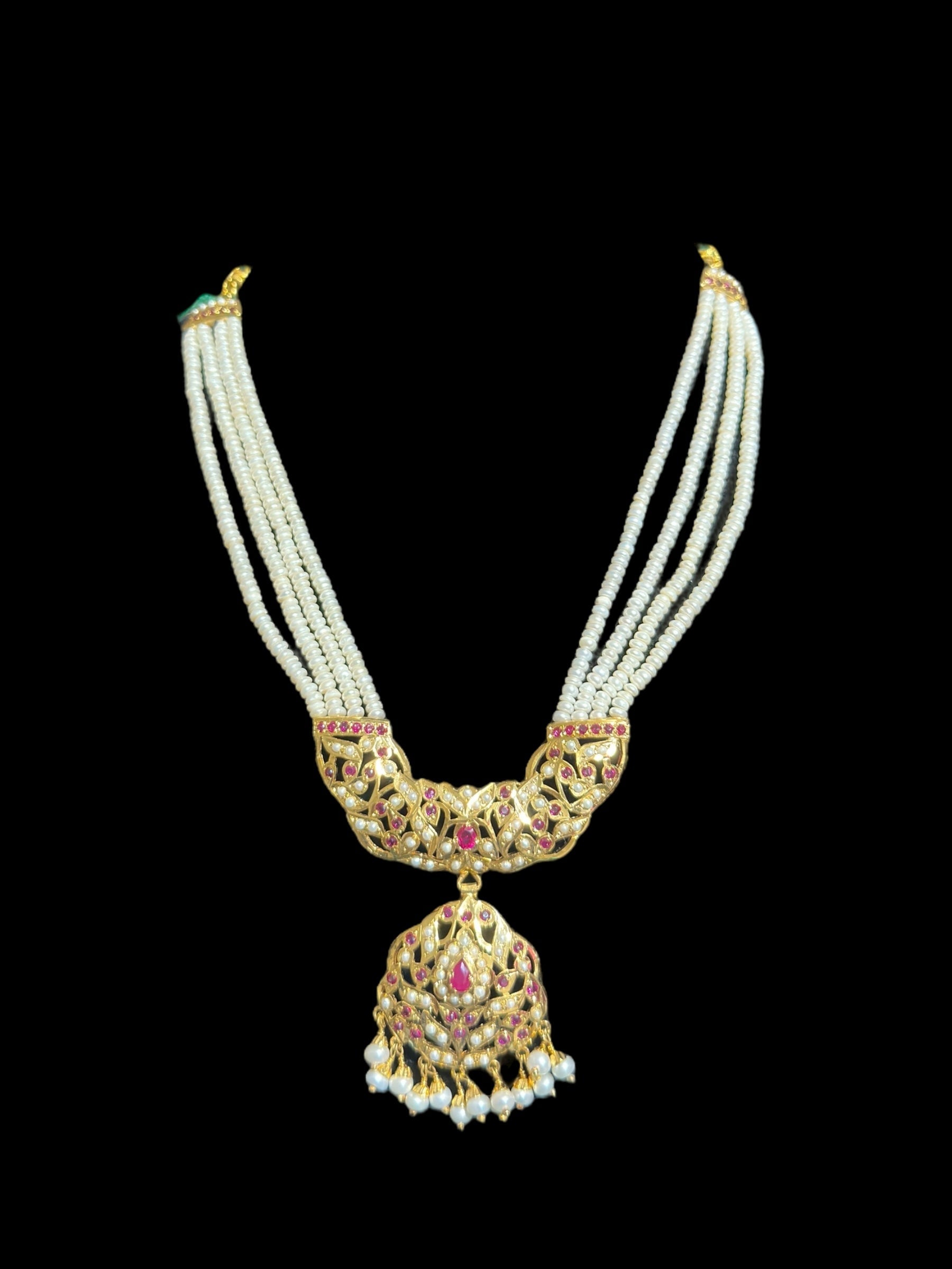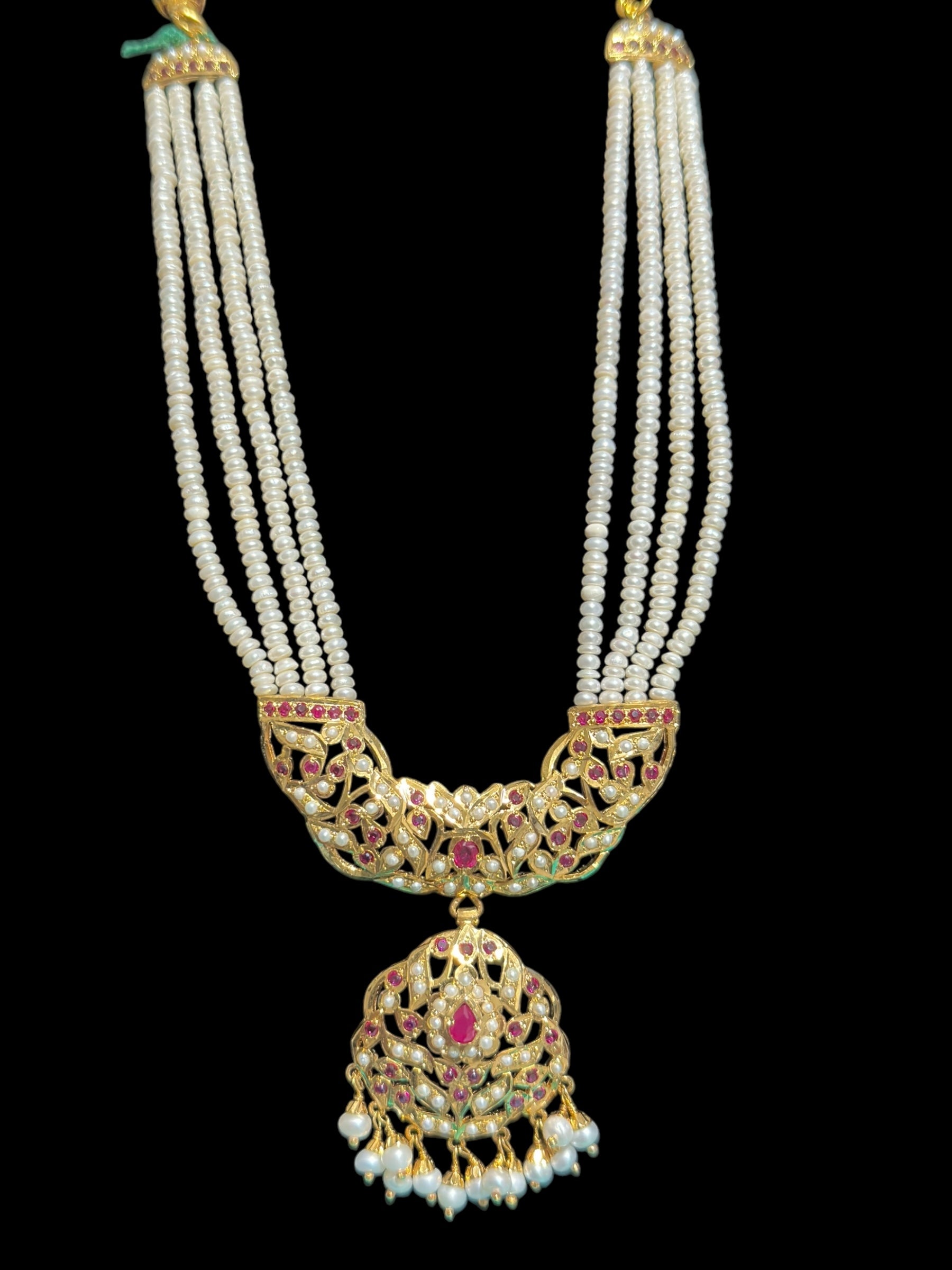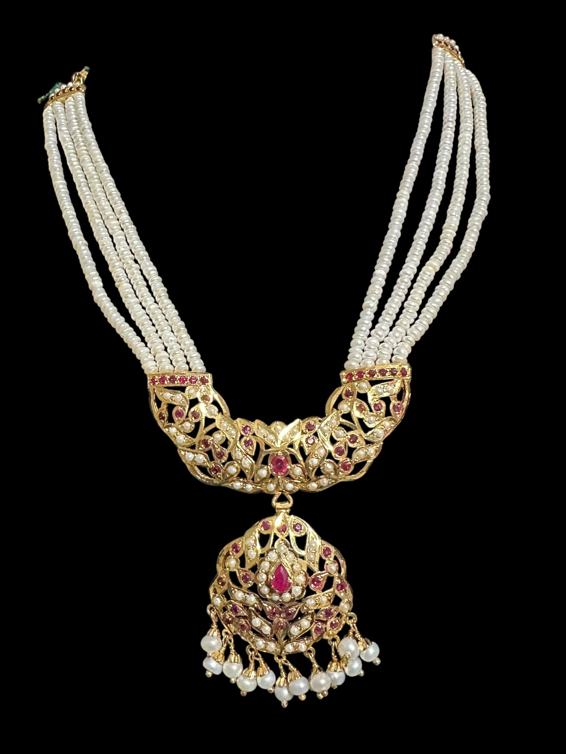 Ruby pearl gold plated silver necklace set ( READY TO SHIP )