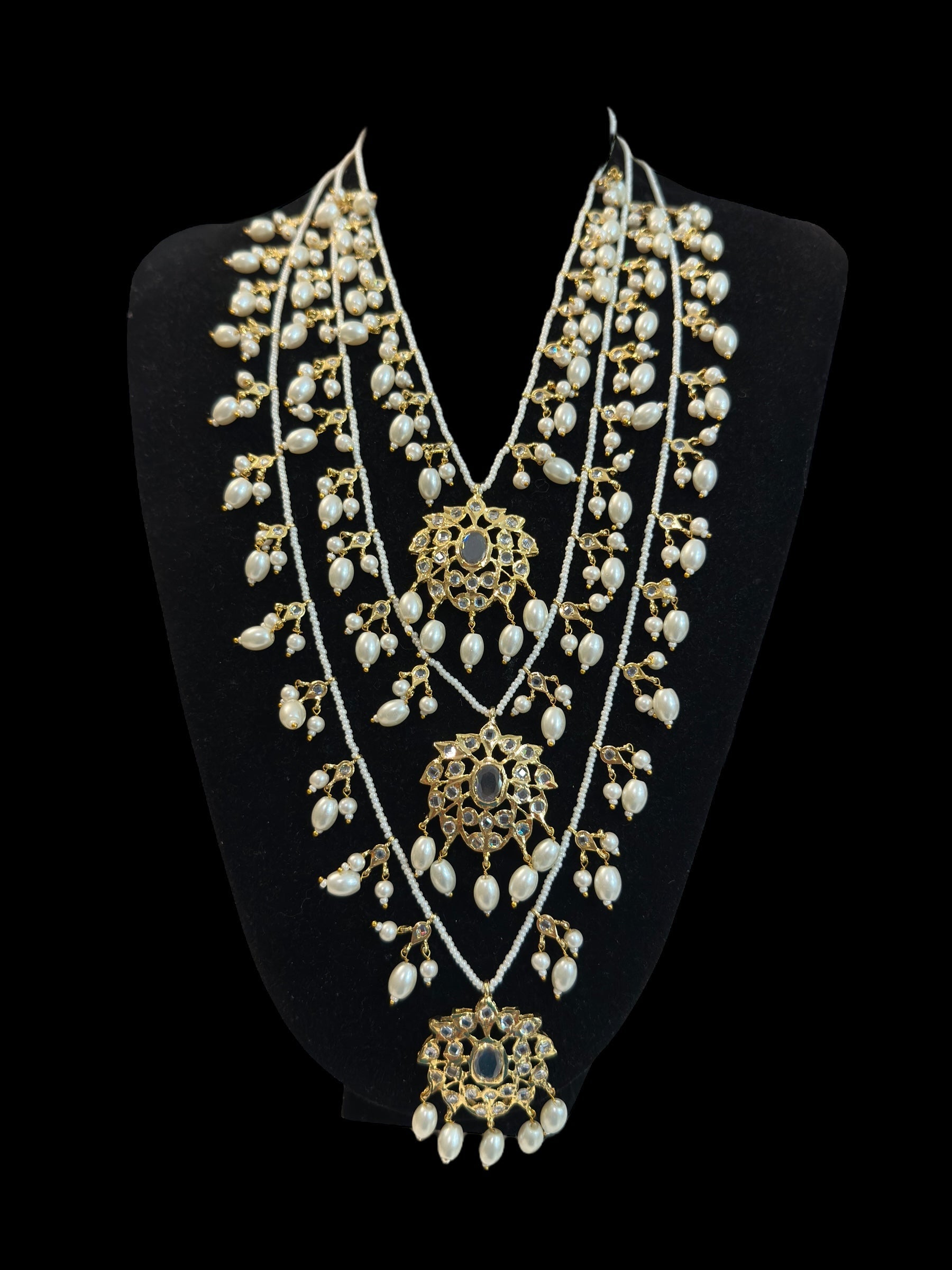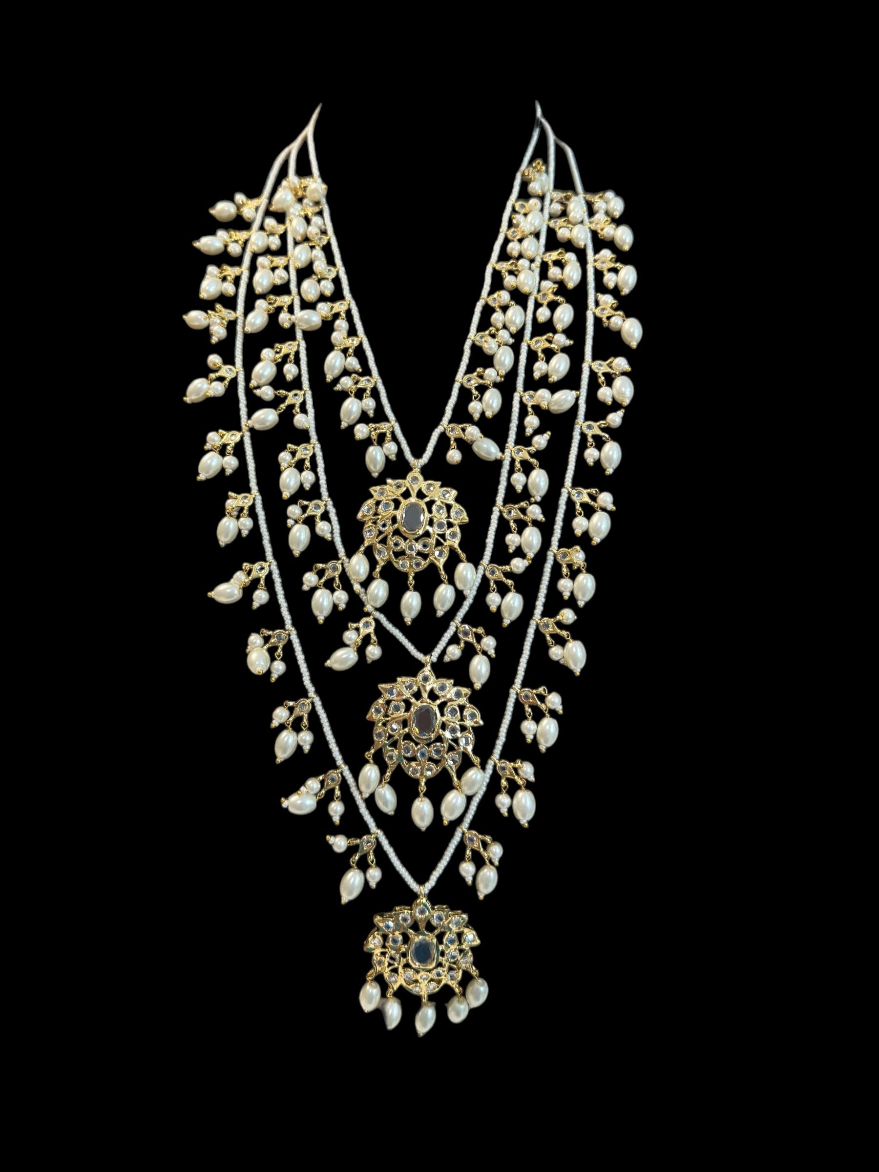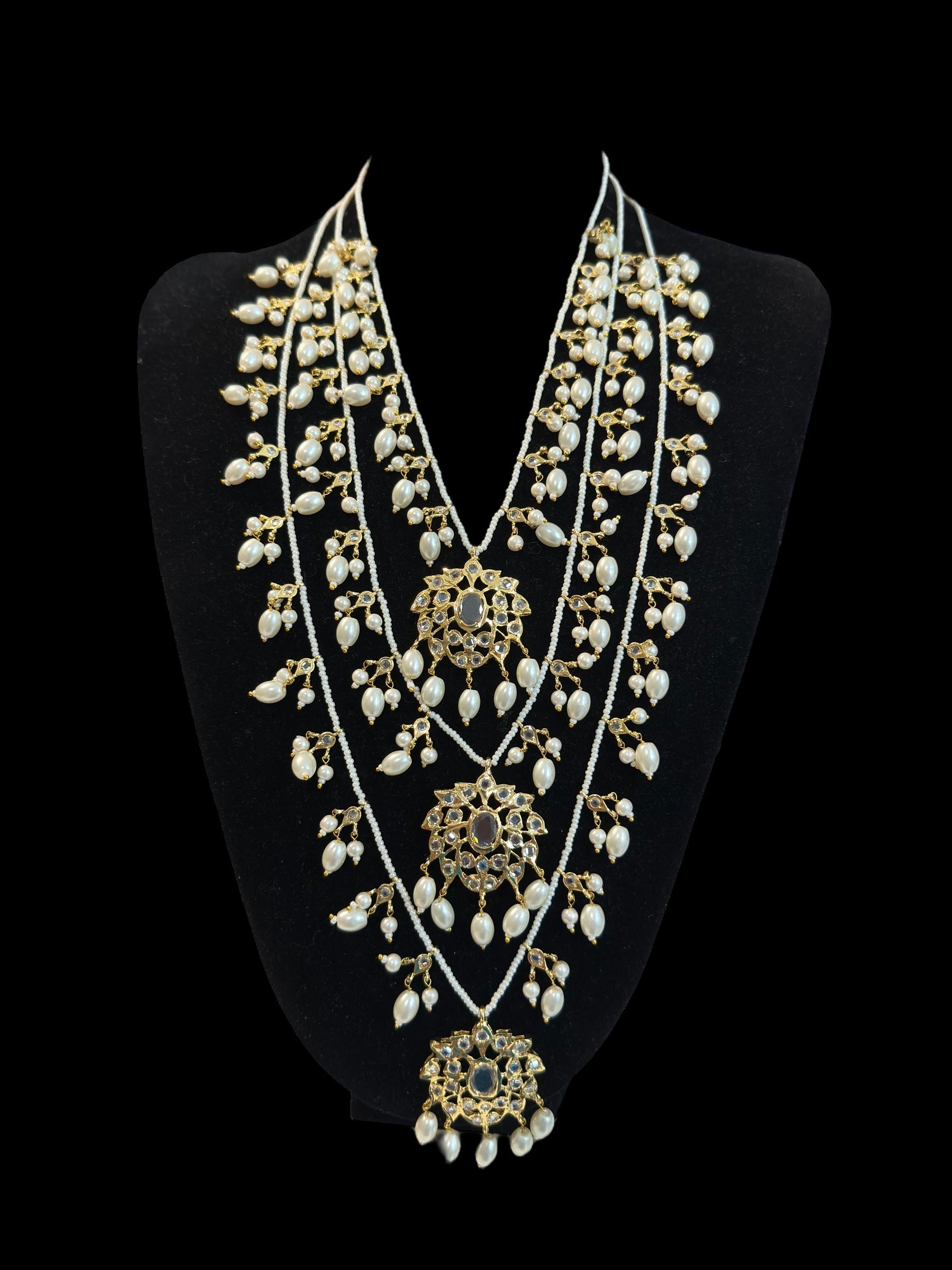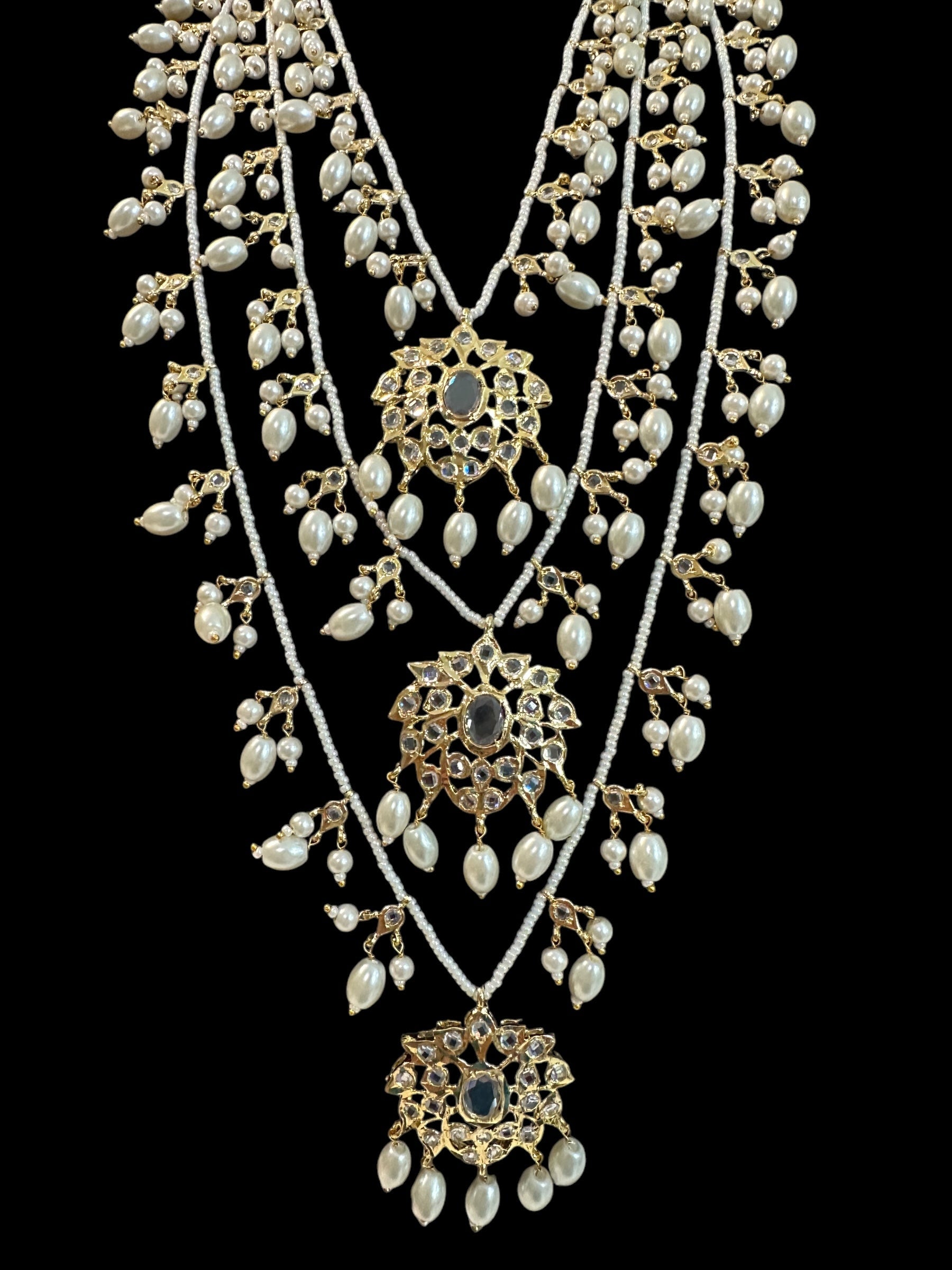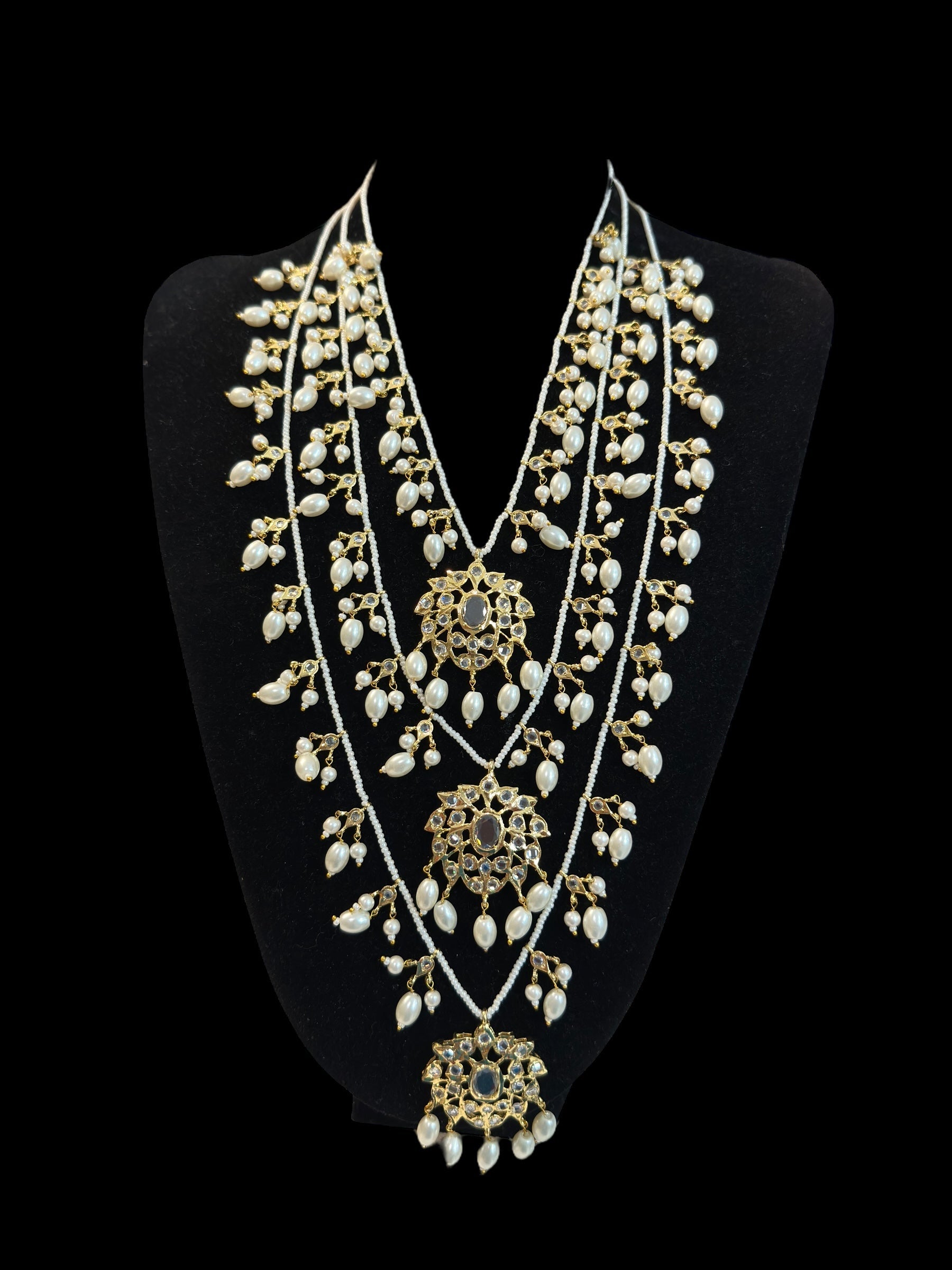 SAT104 Farmana three layer Hyderabadi necklace in pearls ( READY TO SHIP )