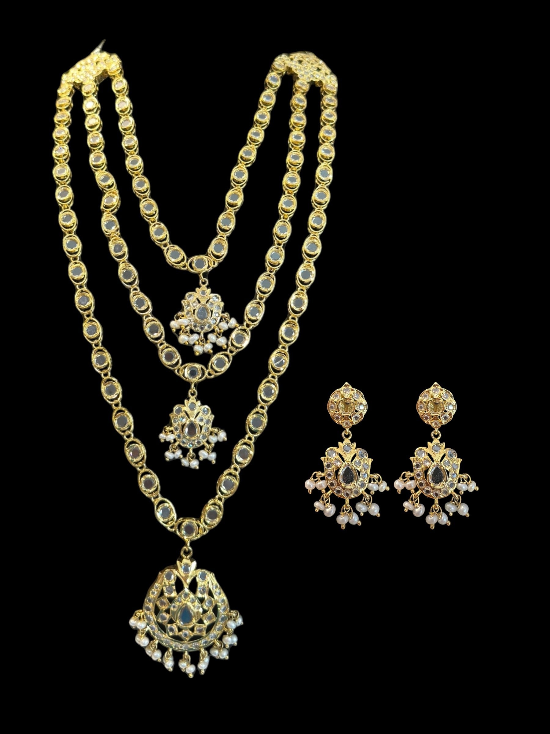 SAT105 Mallika hyderabadi three layer necklace set in fresh water pearls ( READY TO SHIP )