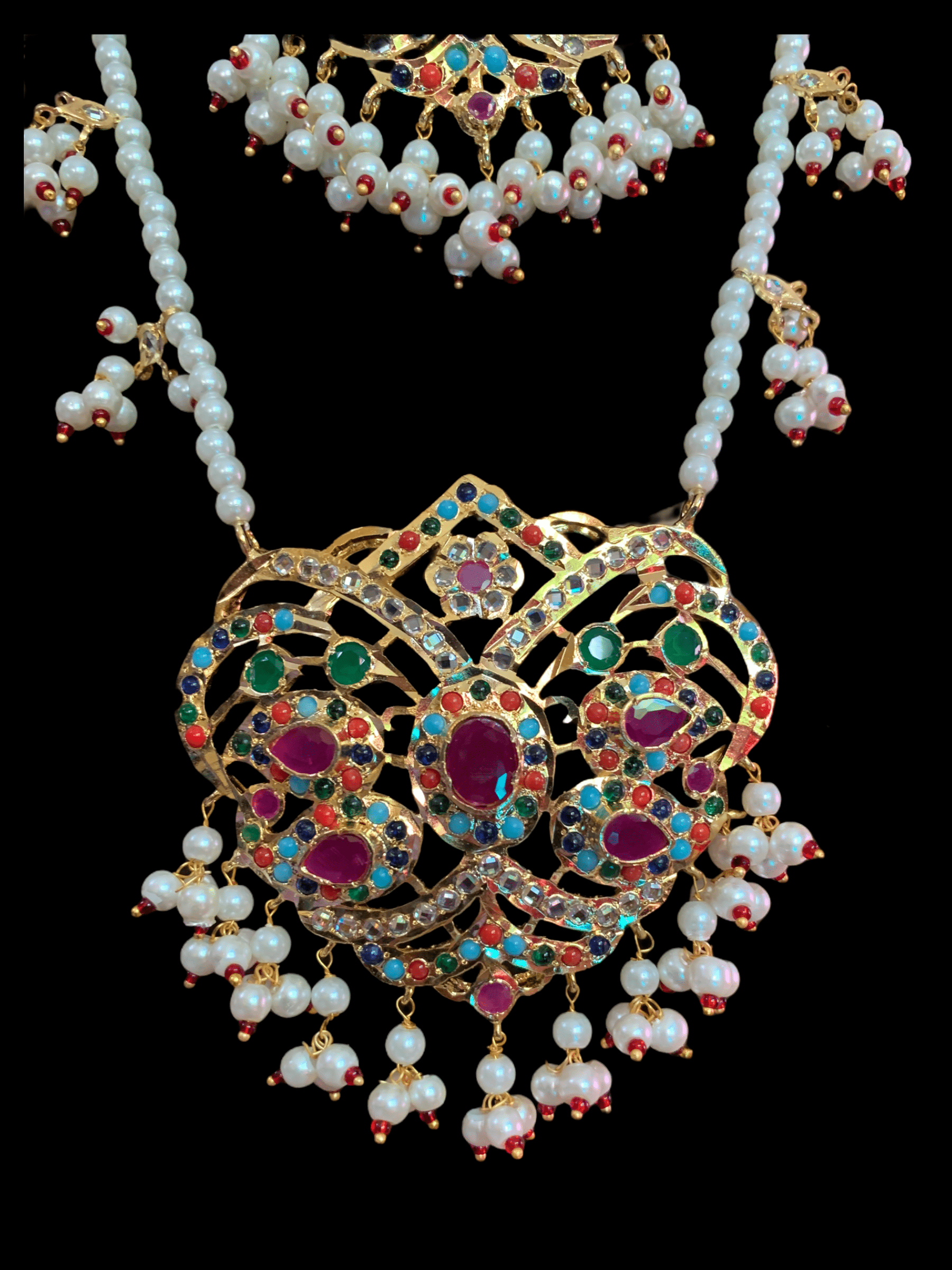 Made using cz polki with shell pearls and beads