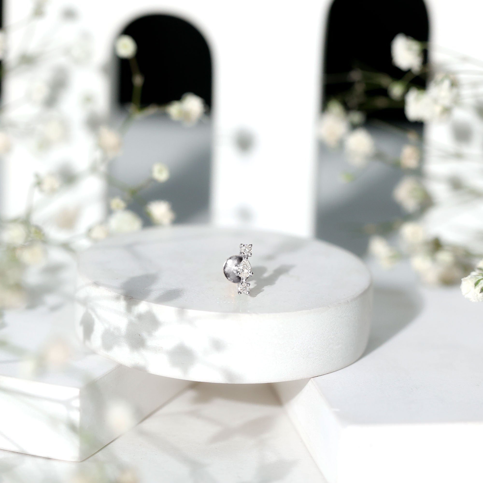 Simple Three Diamond Cartilage Earring with Flat Back ‐ Natural - ( HI-SI ) / 18K White Gold / Flat Back 4.5 MM