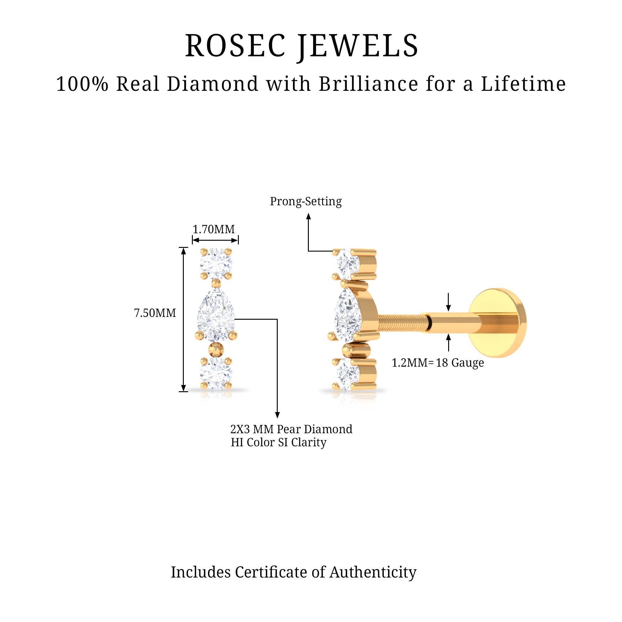 Simple Three Diamond Cartilage Earring with Flat Back ‐ Natural - ( HI-SI ) / 14K Yellow Gold / Flat Back 7.0 MM