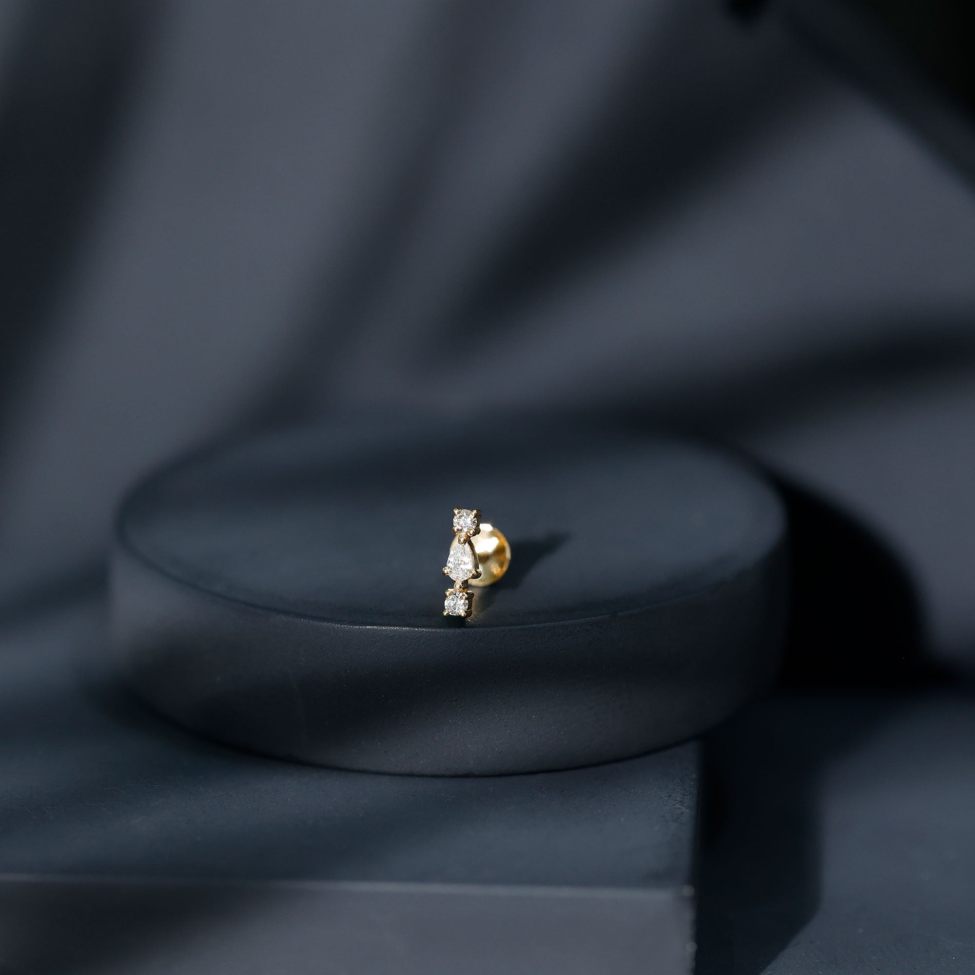 Simple Three Diamond Cartilage Earring with Flat Back ‐ Natural - ( HI-SI ) / 18K Yellow Gold / Flat Back 4.5 MM