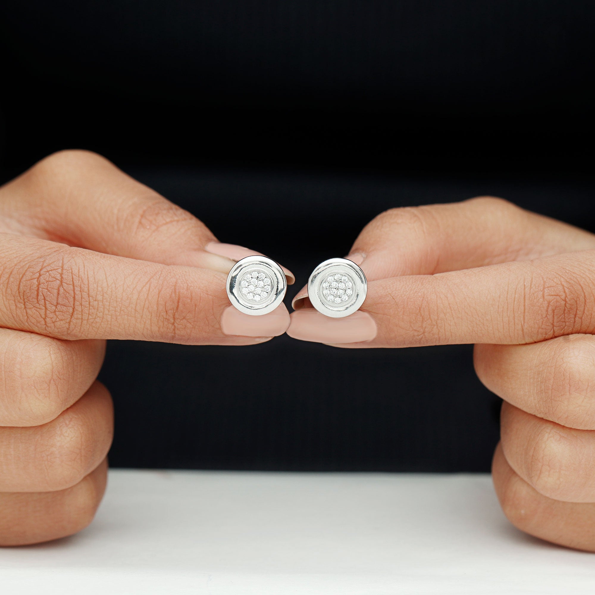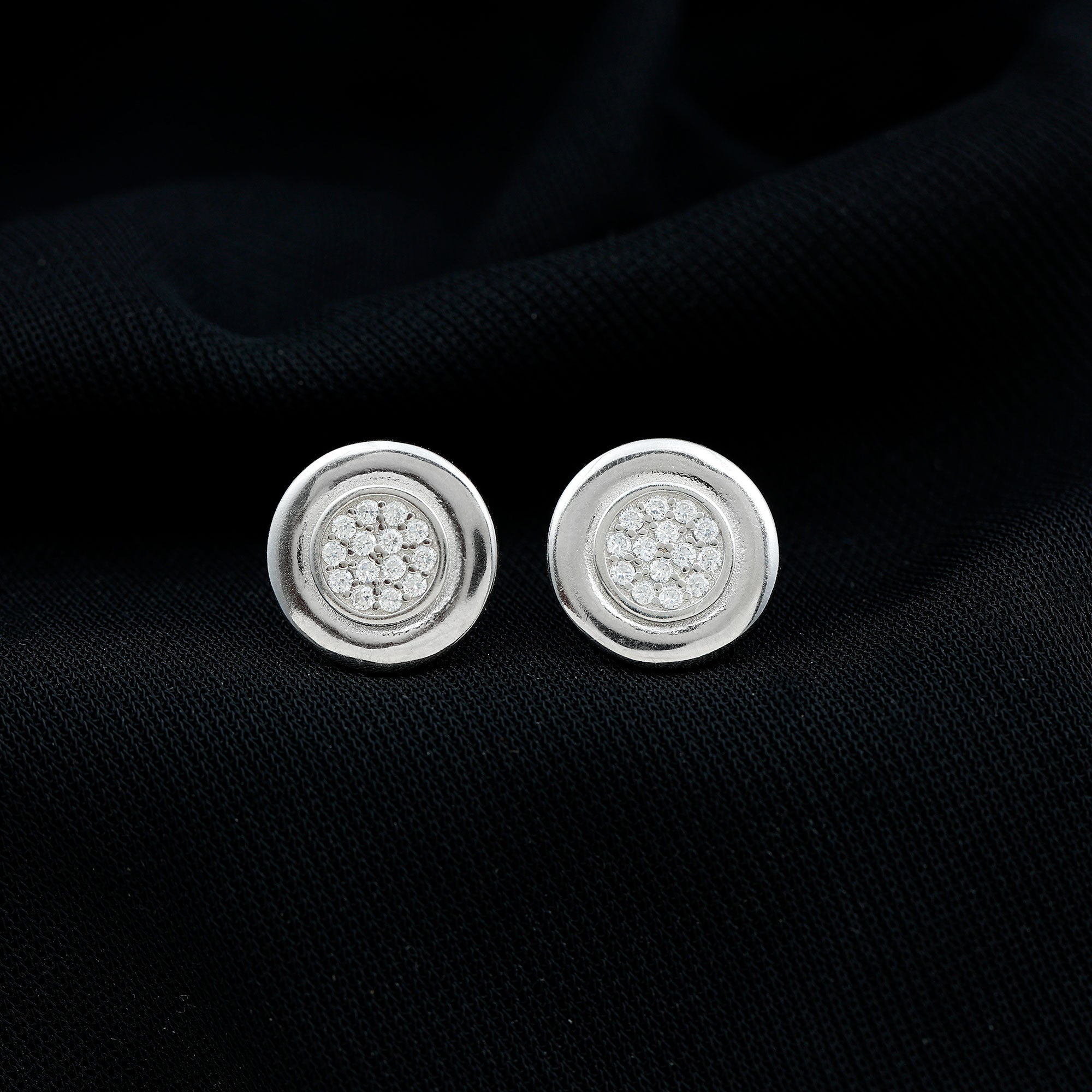 Adorn your ears with these CZ Stud Earrings, crafted precisely with 14K White Gold Plated Silver. The earrings feature a Cluster of Zircon Stones securely placed in Pave Setting. These Classic Earrings can be presented to someone special on occasions such as anniversaries and birthdays. These Earrings with Screw on Backs stays on place throughout the day. The dazzling shimmer of AAAA Quality Zirconia embedded in these Cluster Studs makes them perfect to add shimmer to any outfit.