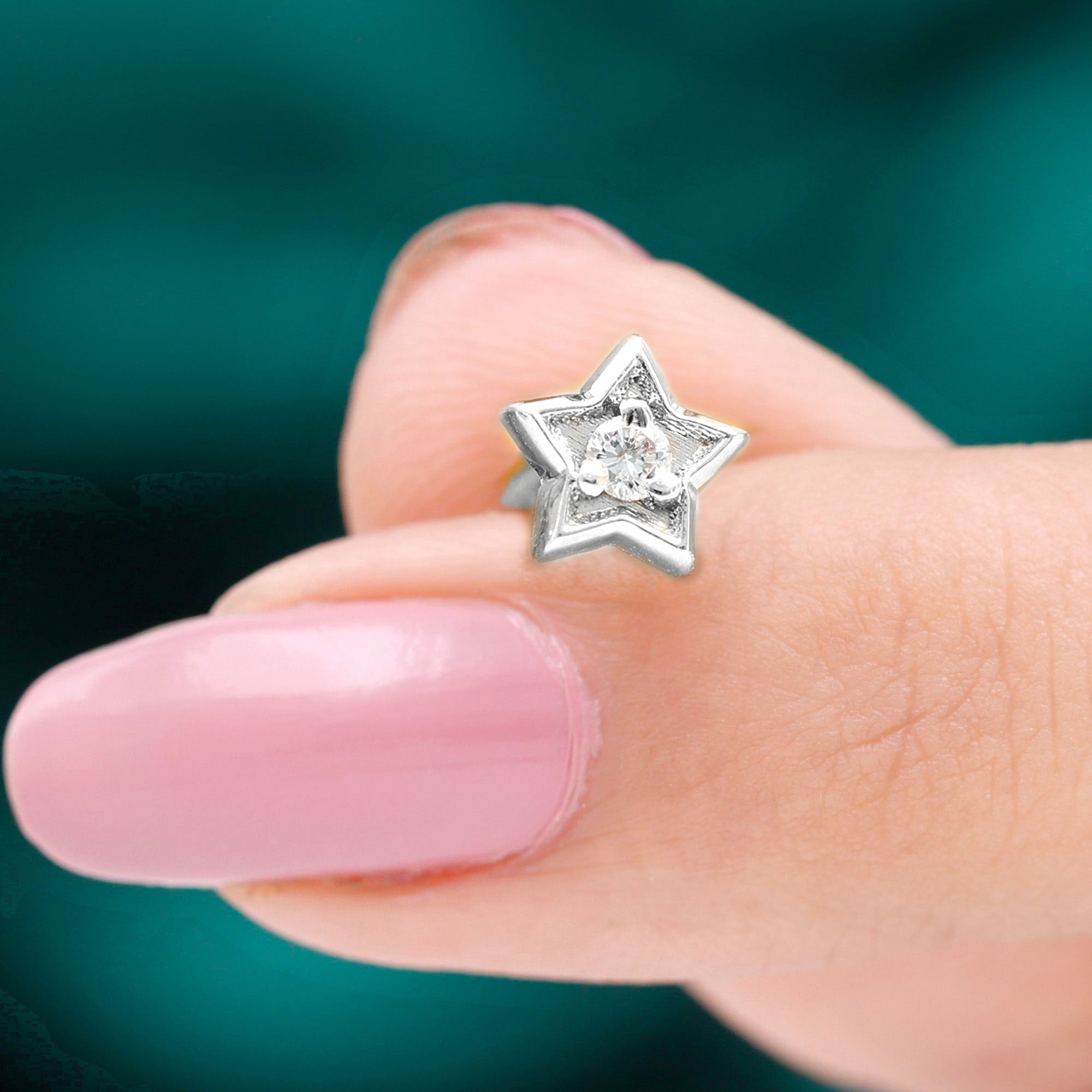 Solitaire Moissanite Star Earring for Conch Piercing ‐ D-VS1 / 18K White Gold / Select Option