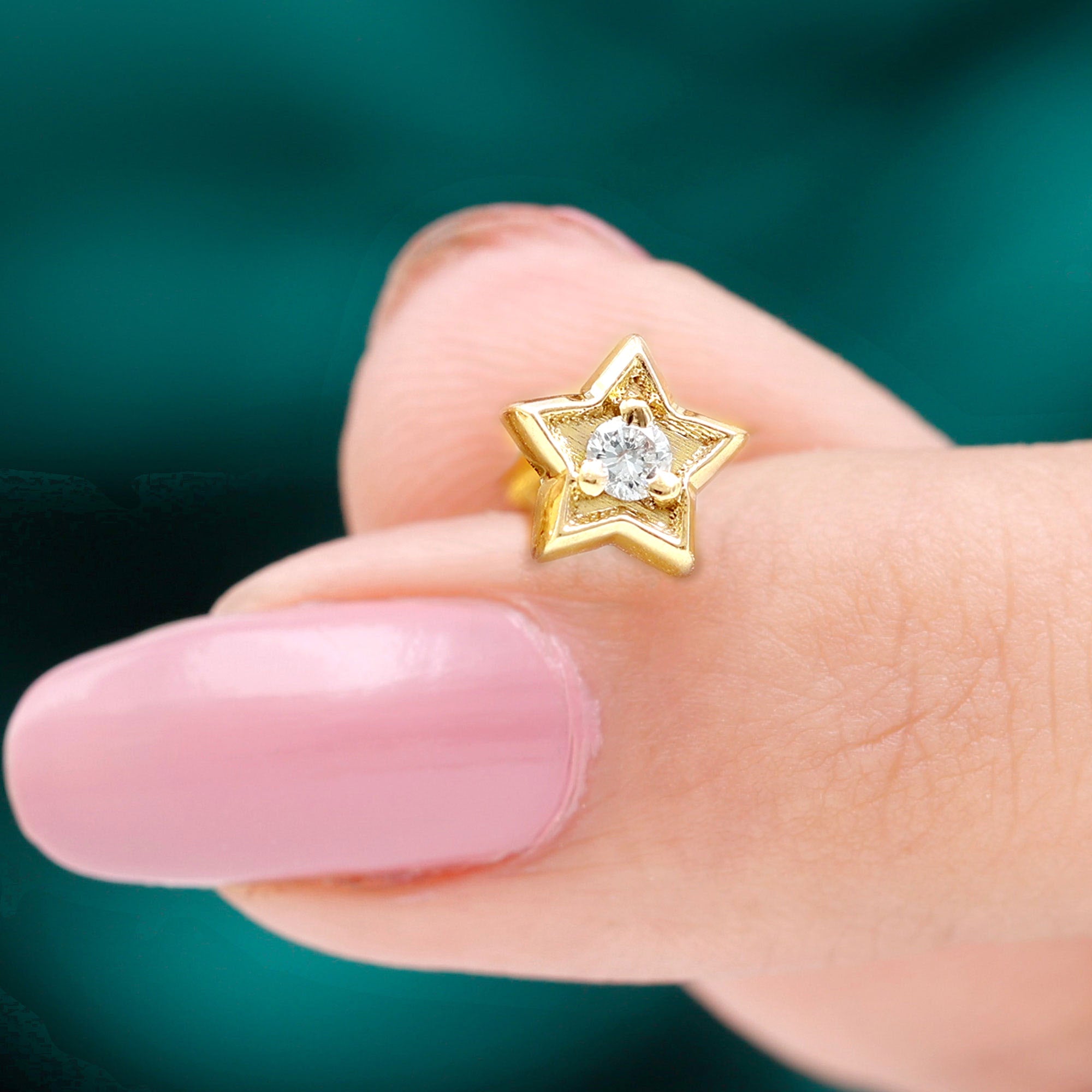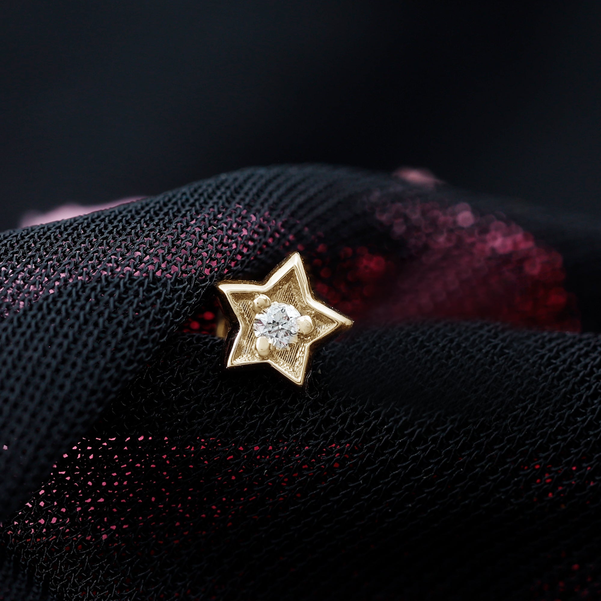 Solitaire Moissanite Star Earring for Conch Piercing ‐ D-VS1 / 18K Yellow Gold / Select Option