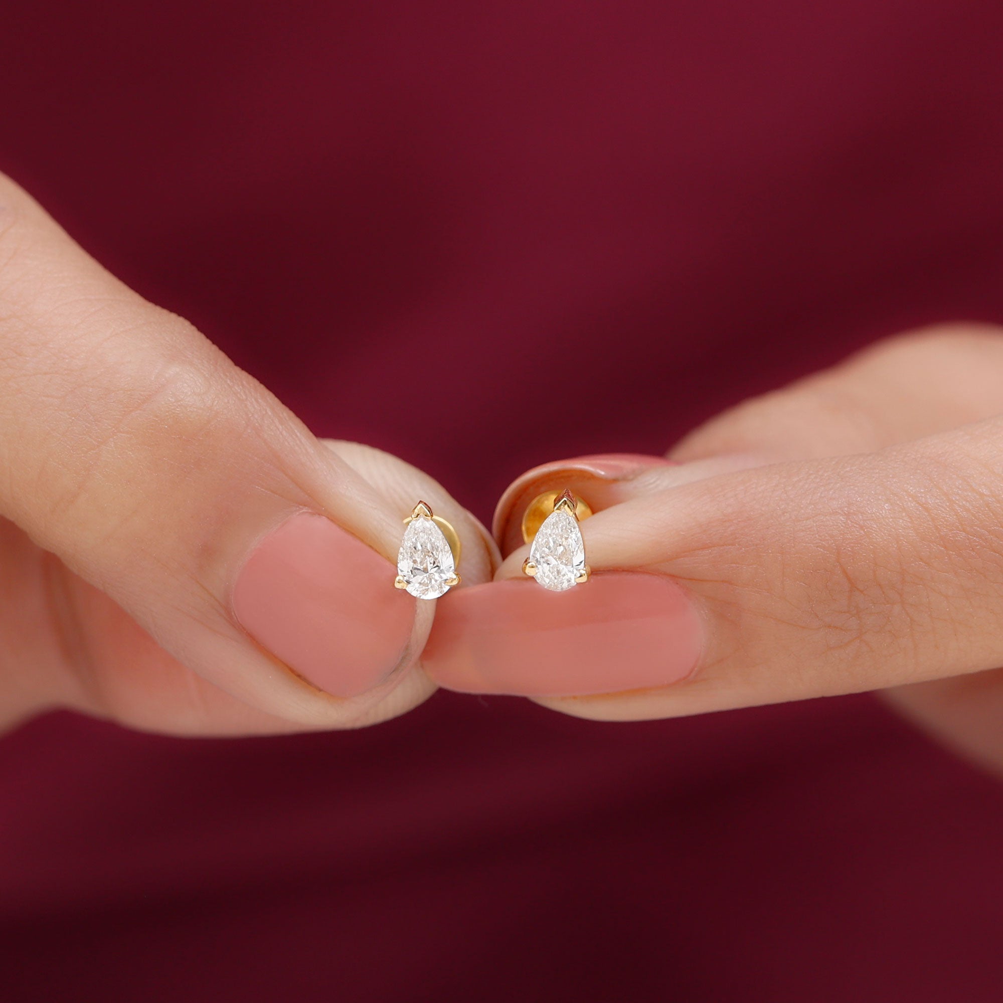 Solitaire Pear Shape Diamond Earring for Tragus Piercing ‐ Lab - ( EF-VS ) / 18K Yellow Gold / Flat Back 5.5 MM