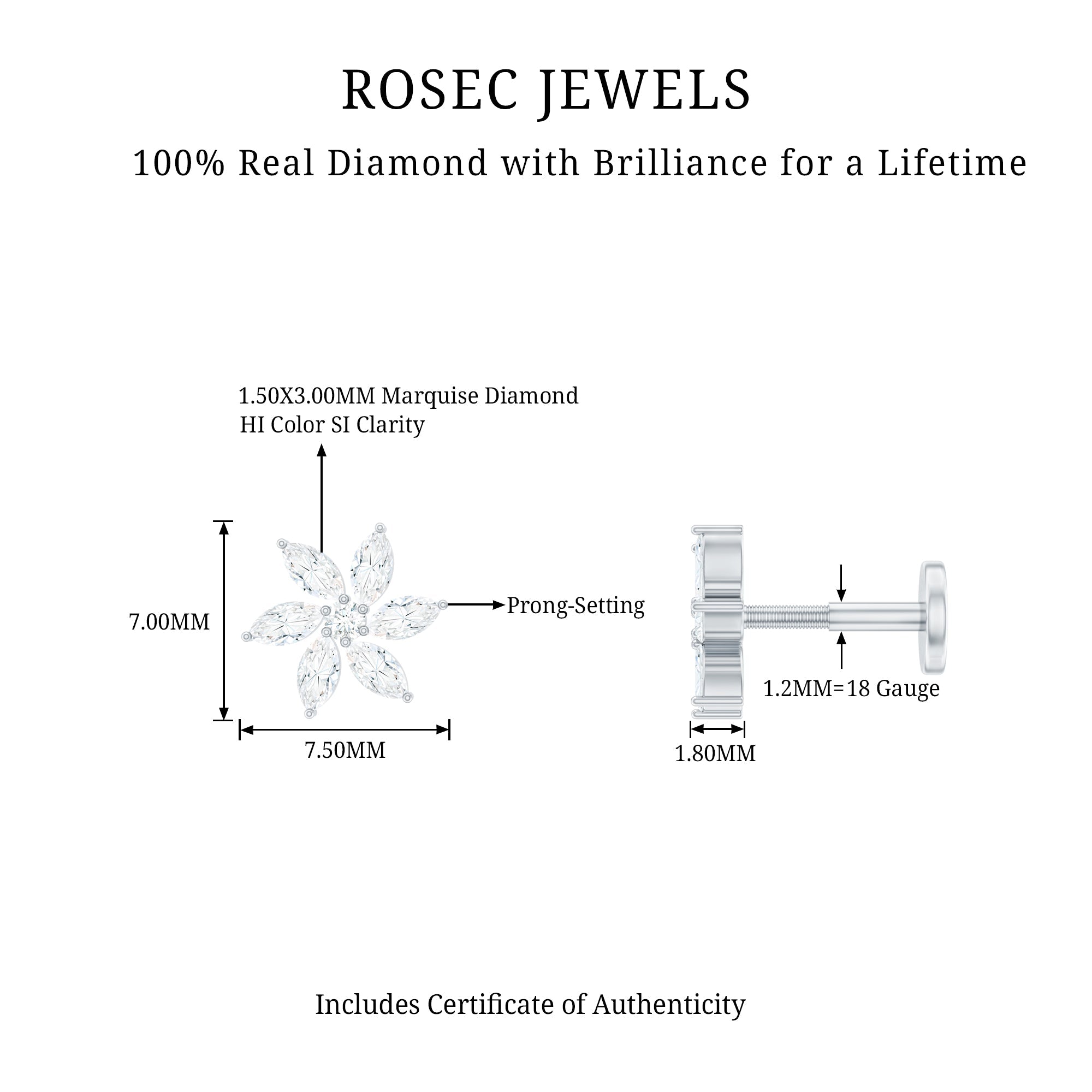Sparkling Marquise Diamond Flower Helix Earring ‐ Natural - ( HI-SI ) / 14K White Gold / Flat Back 4.5 MM