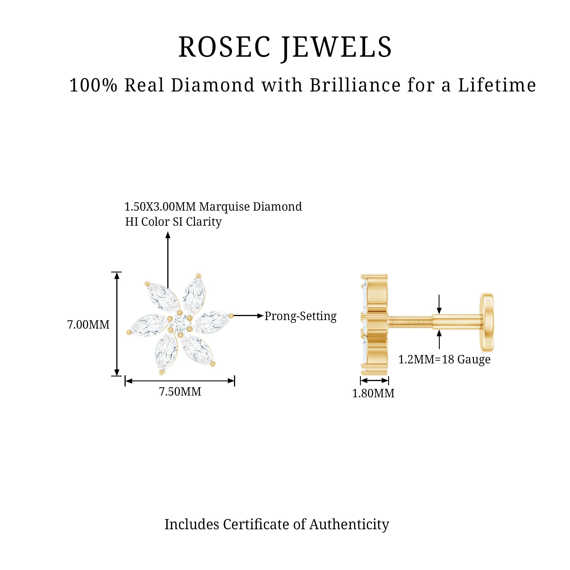 Sparkling Marquise Diamond Flower Helix Earring ‐ Natural - ( HI-SI ) / 14K Yellow Gold / Flat Back 4.5 MM