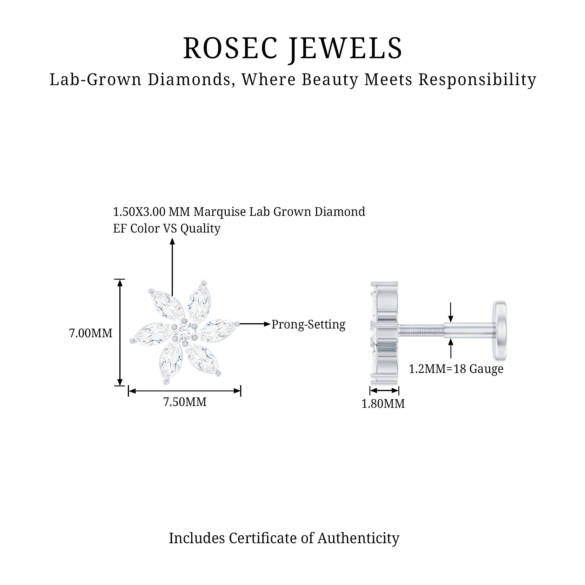 Sparkling Marquise Diamond Flower Helix Earring ‐ Lab - ( EF-VS ) / 18K White Gold / Flat Back 5.5 MM
