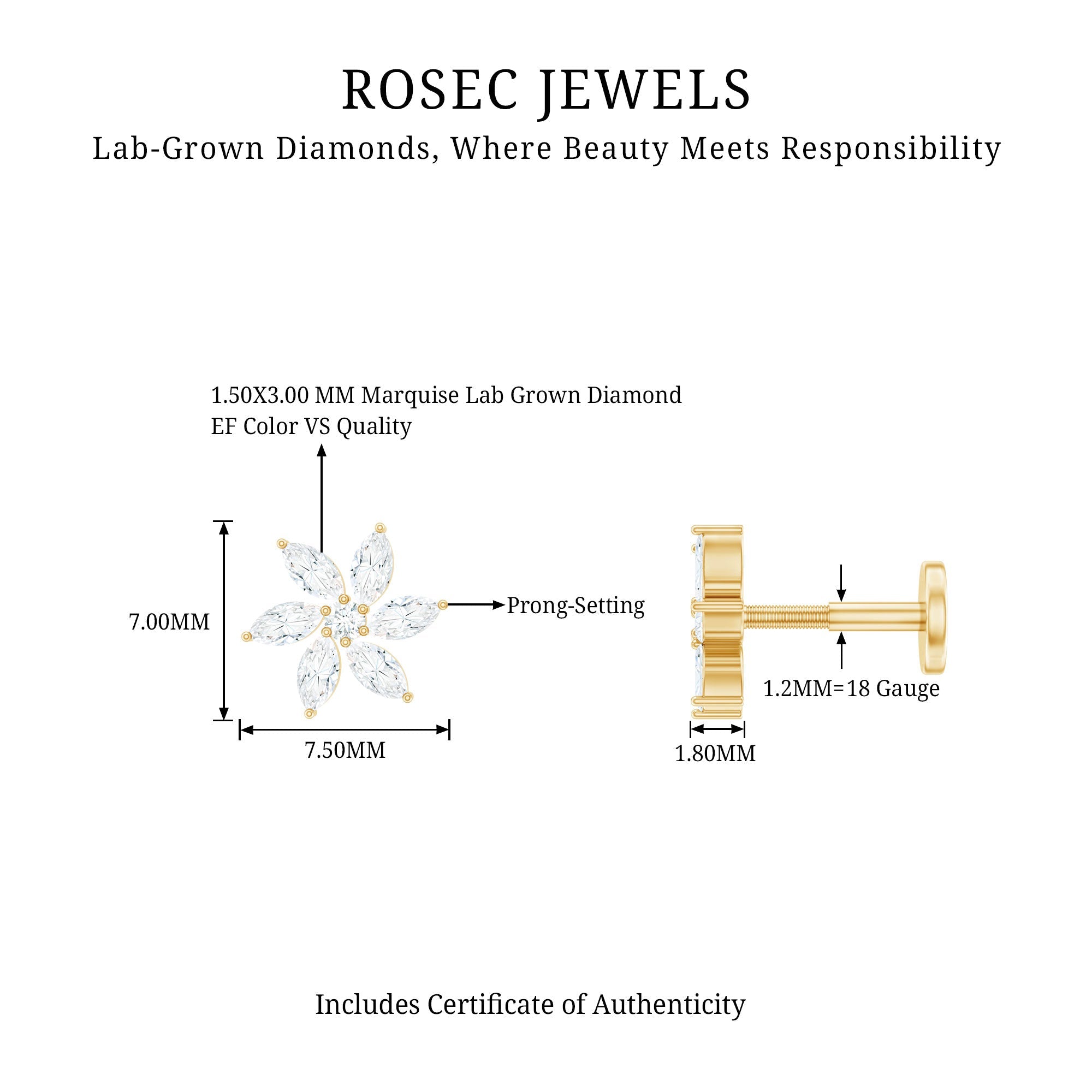 Sparkling Marquise Diamond Flower Helix Earring ‐ Lab - ( EF-VS ) / 14K Yellow Gold / Flat Back 5.5 MM