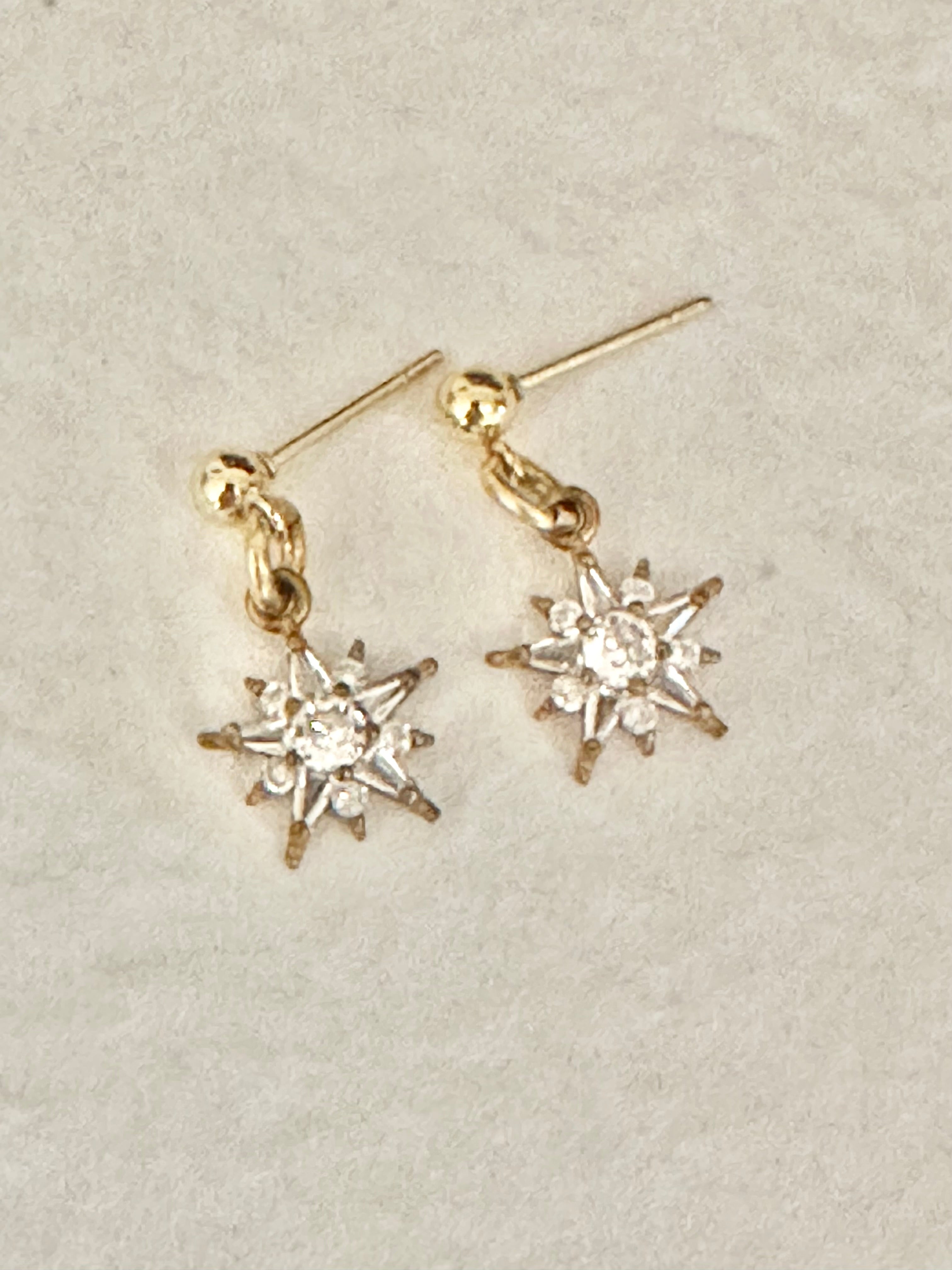 Stylish cubic zirconia star sparkles with cz's cut into dainty triangles and circles. These earrings have incredible sparkle.