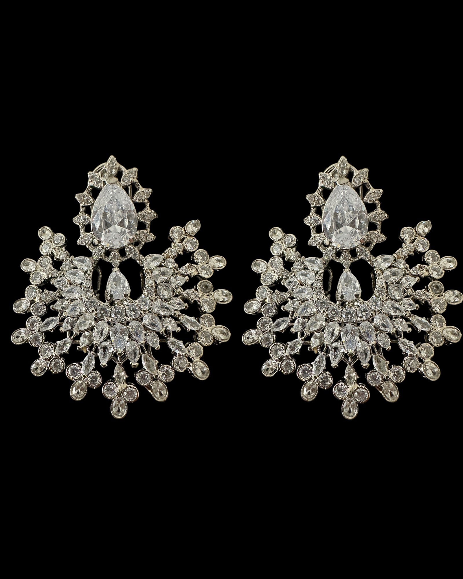 DJET95 Subhana silver plated chandbali earrings tika set ( READY TO SHIP )
