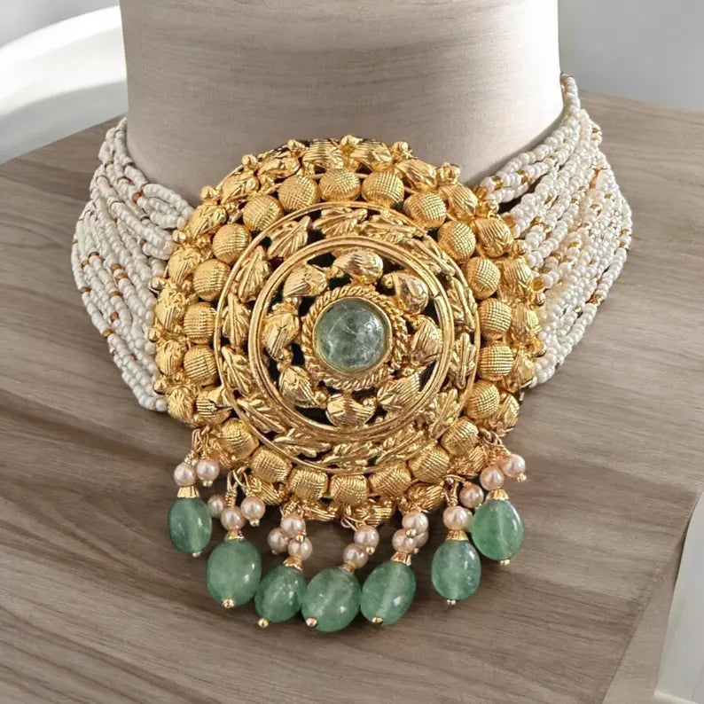 Traditional choker set in gold plated silver ( READY TO SHIP )