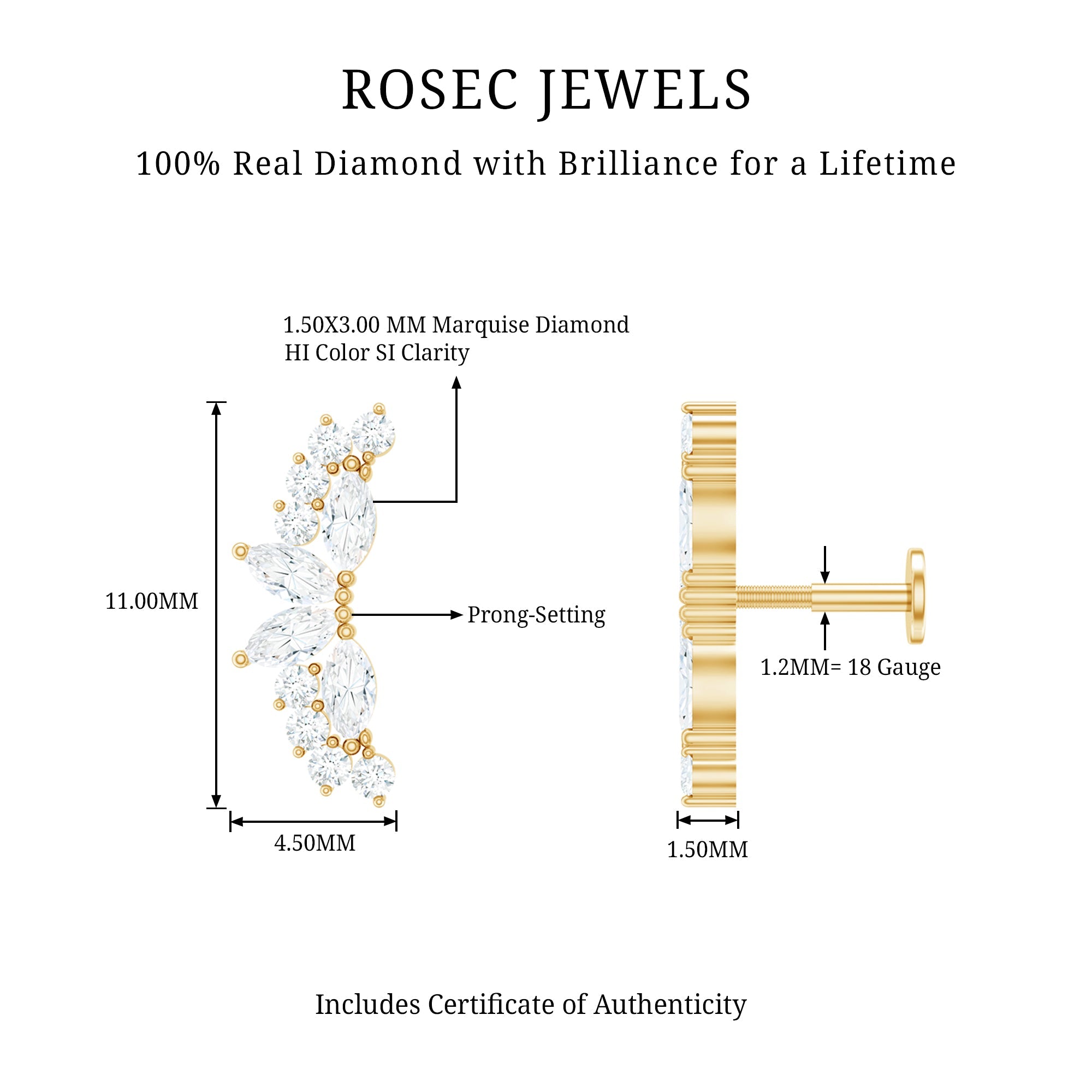Unique Diamond Crawler Earring for Cartilage Piercing ‐ Natural - ( HI-SI ) / 14K Yellow Gold / Flat Back 5.5 MM