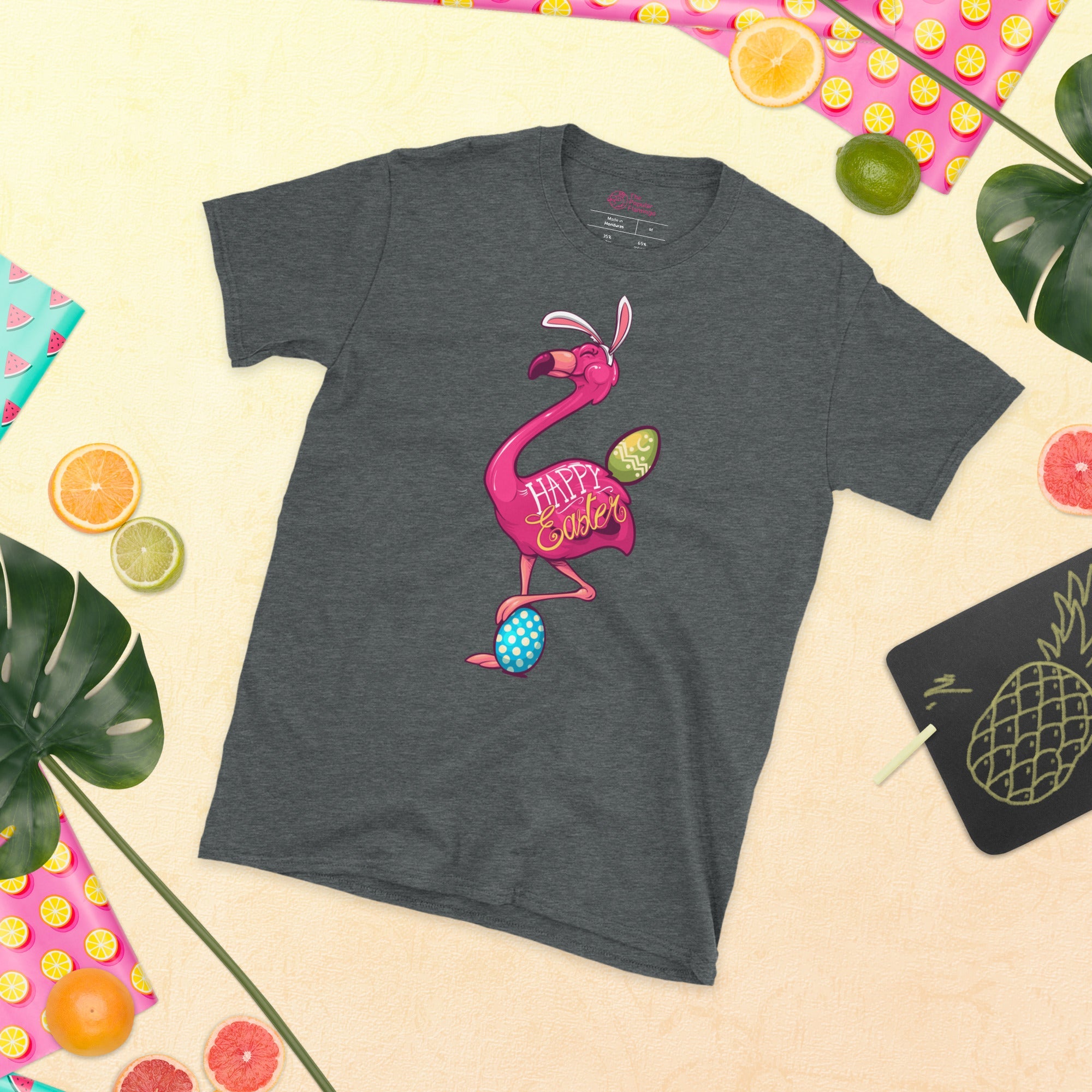 Original The Popular Flamingo Happy Easter T-Shirt ‐ Dark Heather / L