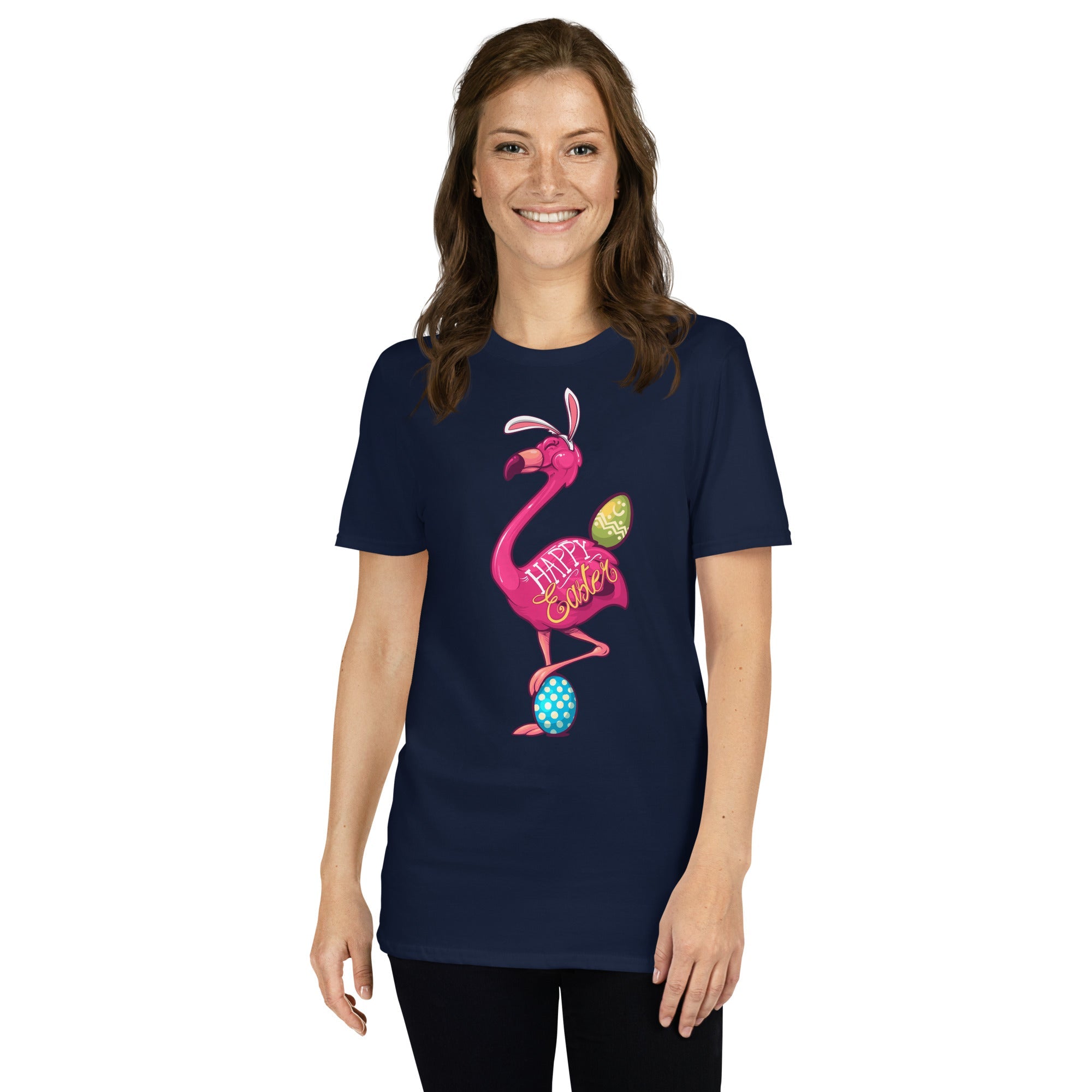 Original The Popular Flamingo Happy Easter T-Shirt ‐ Navy / L
