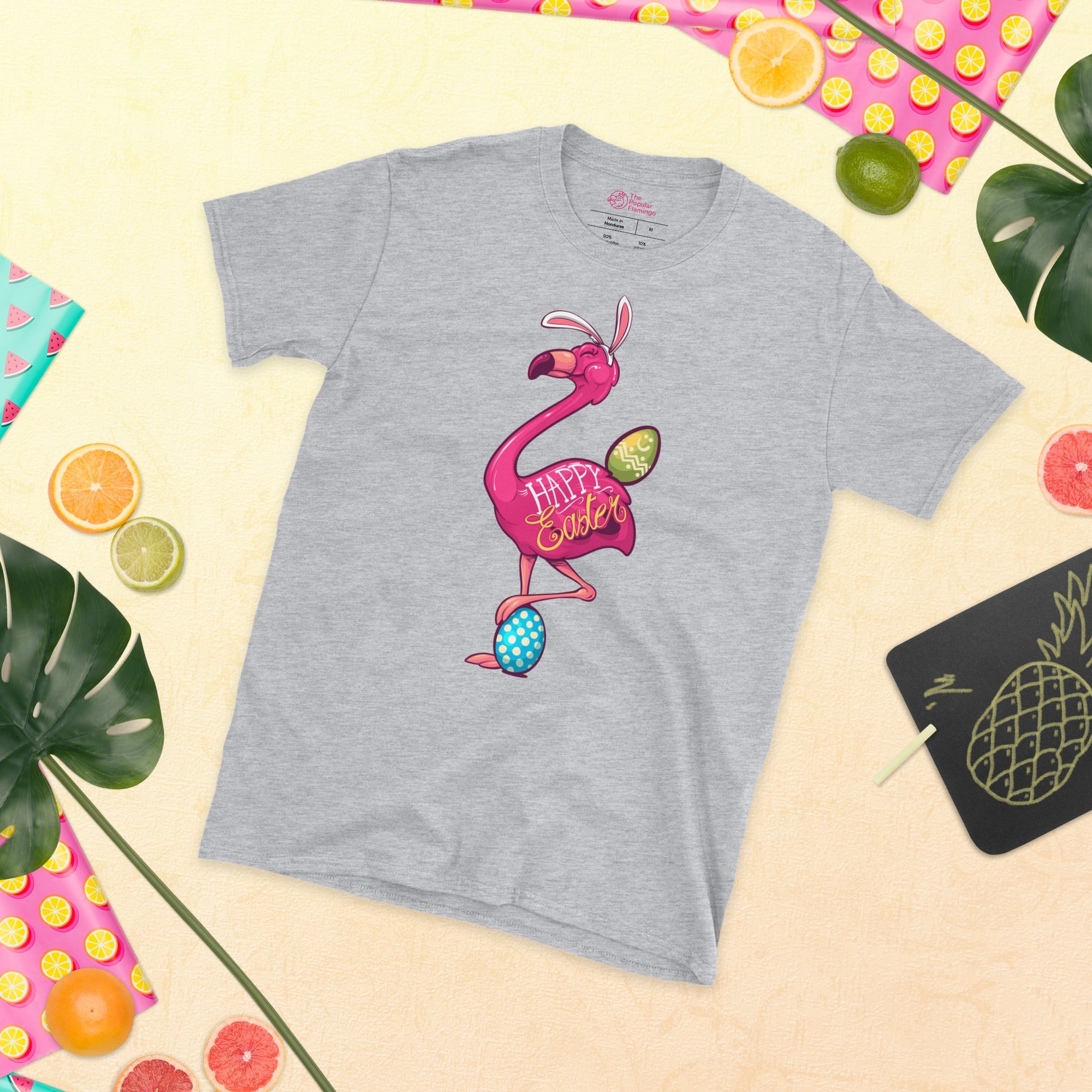Original The Popular Flamingo Happy Easter T-Shirt ‐ Sport Grey / M