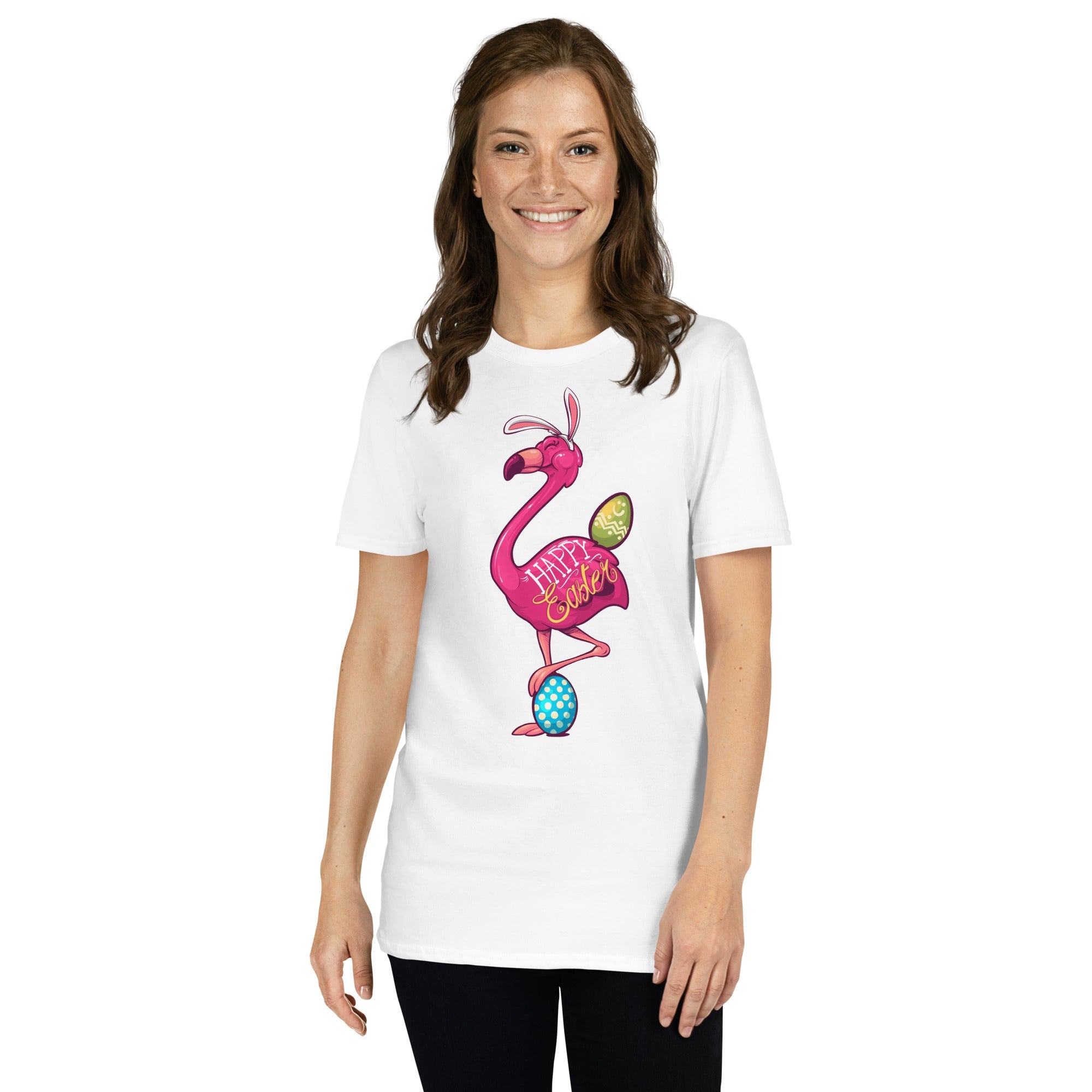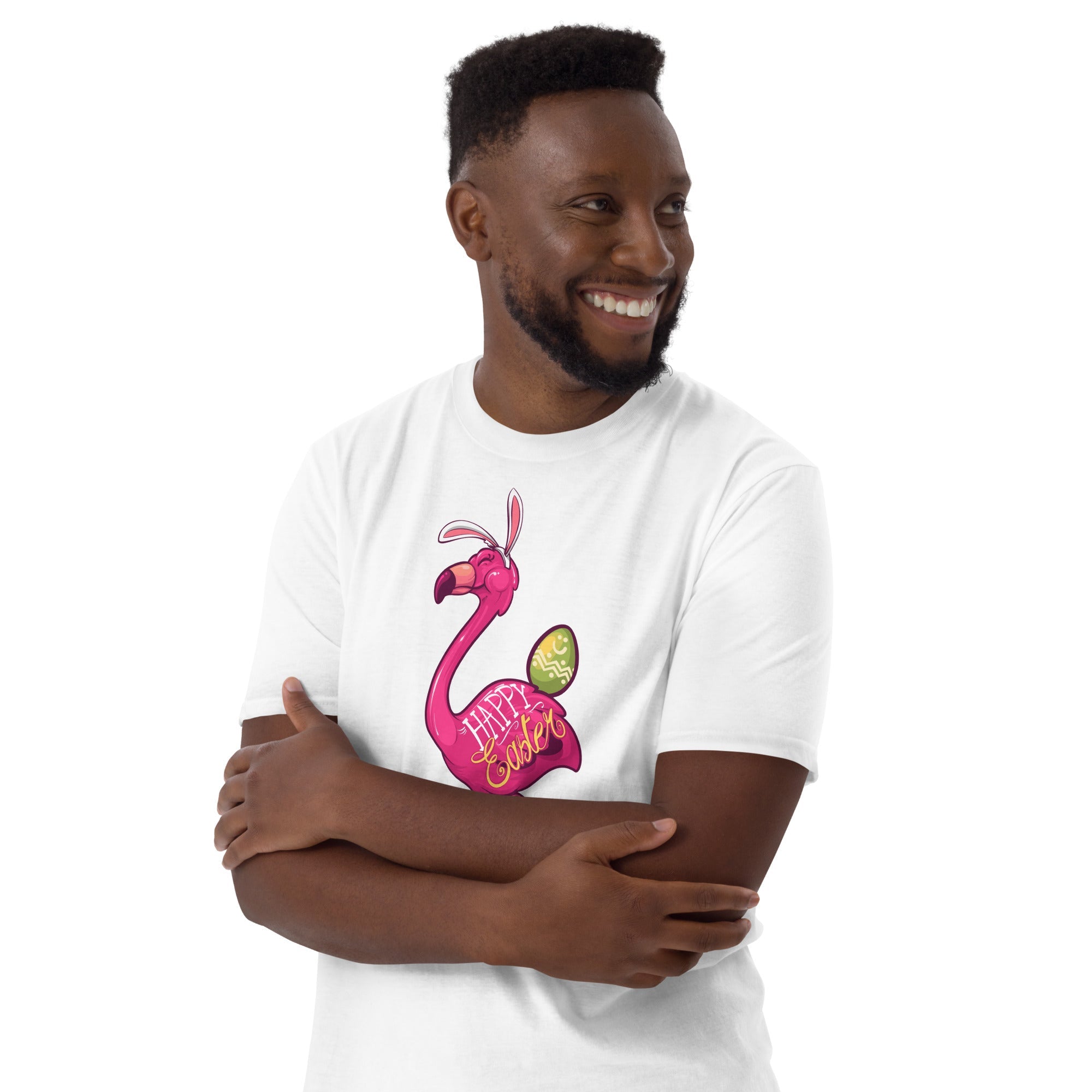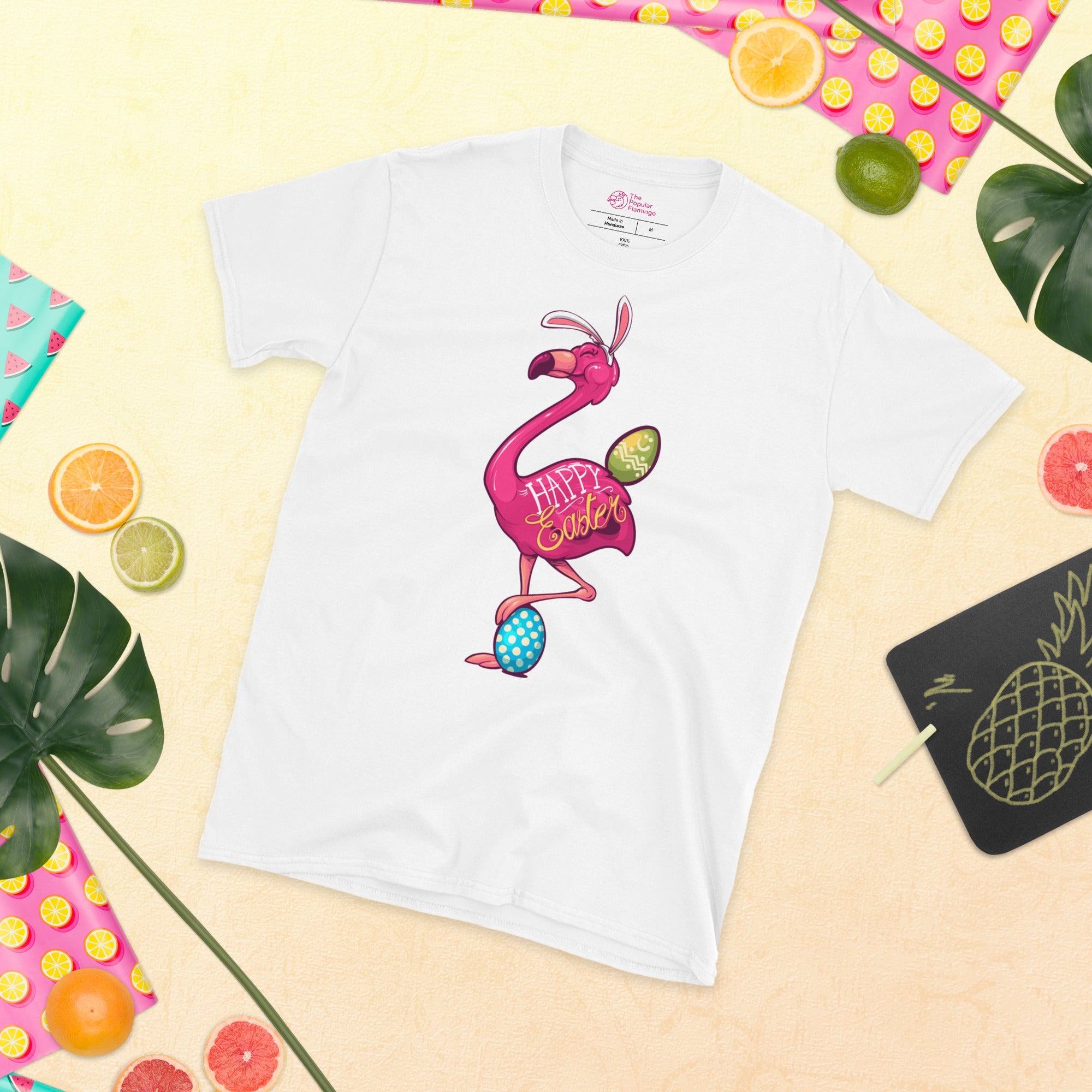 Original The Popular Flamingo Happy Easter T-Shirt ‐ White / M