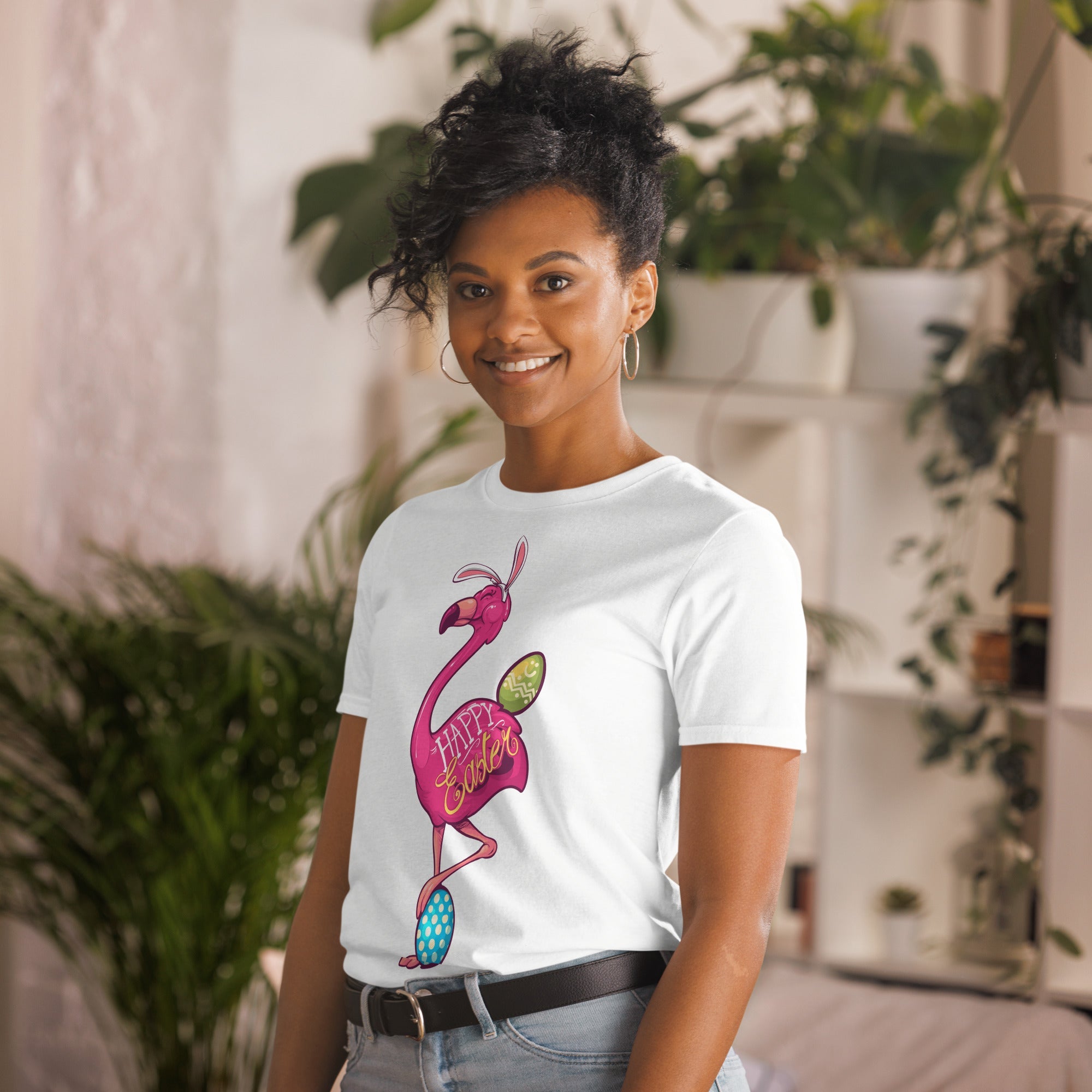 Original The Popular Flamingo Happy Easter T-Shirt ‐ White / S