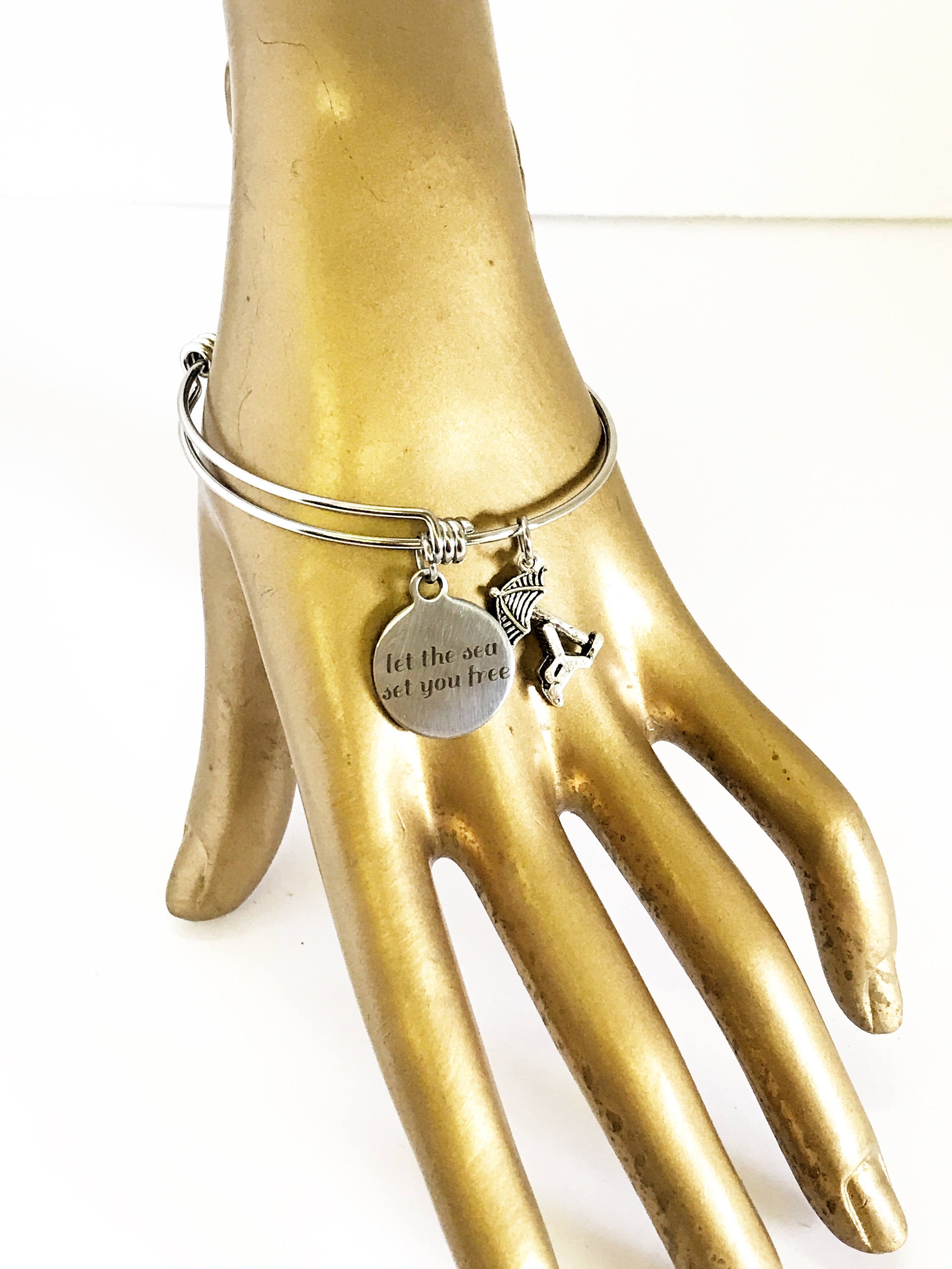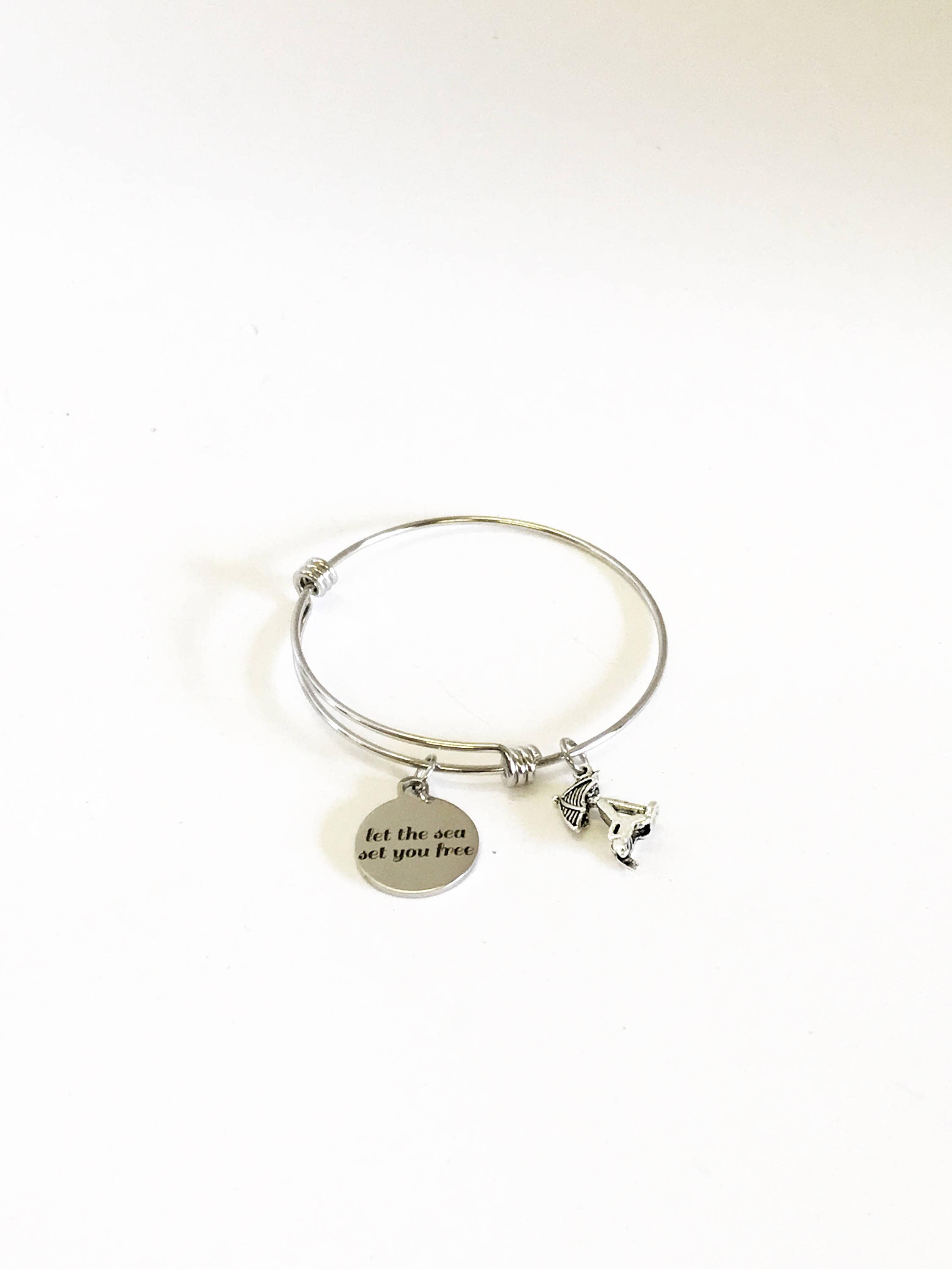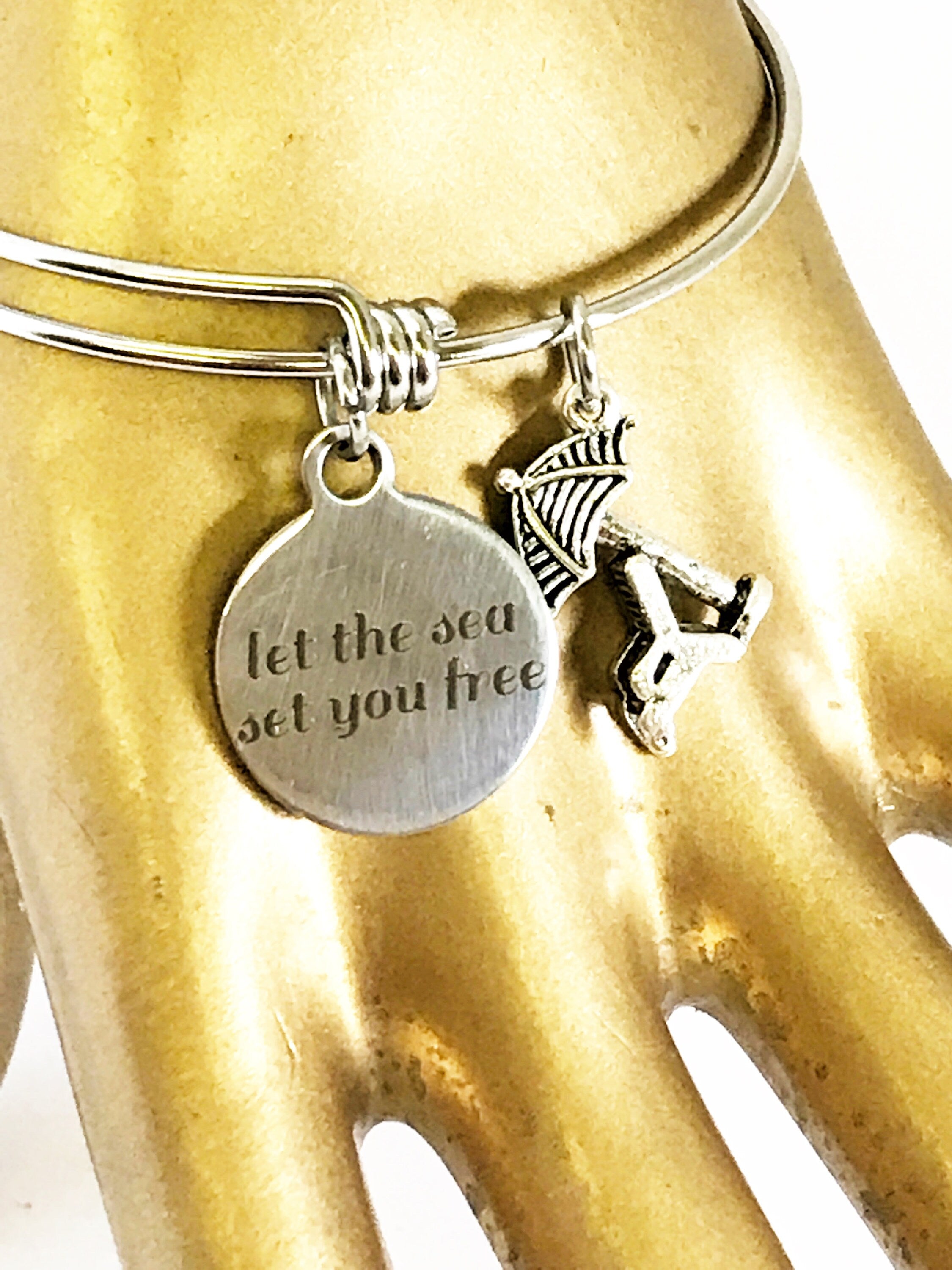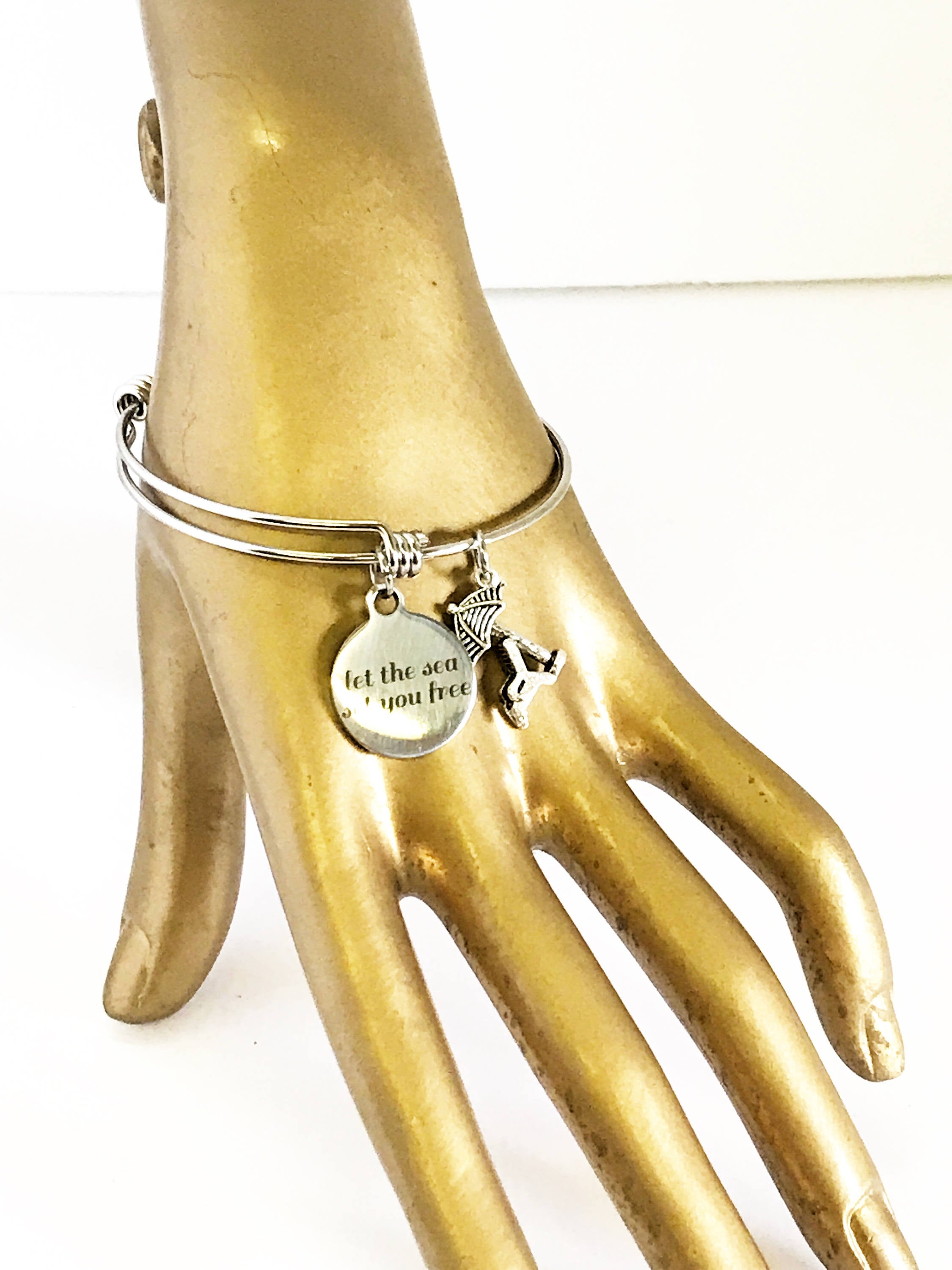 Let The Sea Set You Free Stackable Expanding Bangle Charm Bracelet, Beach Lover Gift, Sea Lover Gift, Girls Weekend Getaway Trip Gifts ‐ Stainless Steel