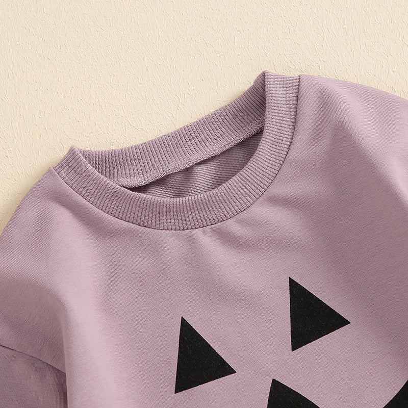 Baby Girls Boys Halloween Romper Casual Pumpkin Jack O Lantern Face Print Round Neck Long Sleeve Jumpsuit ‐ Purple / 3-6M / United States