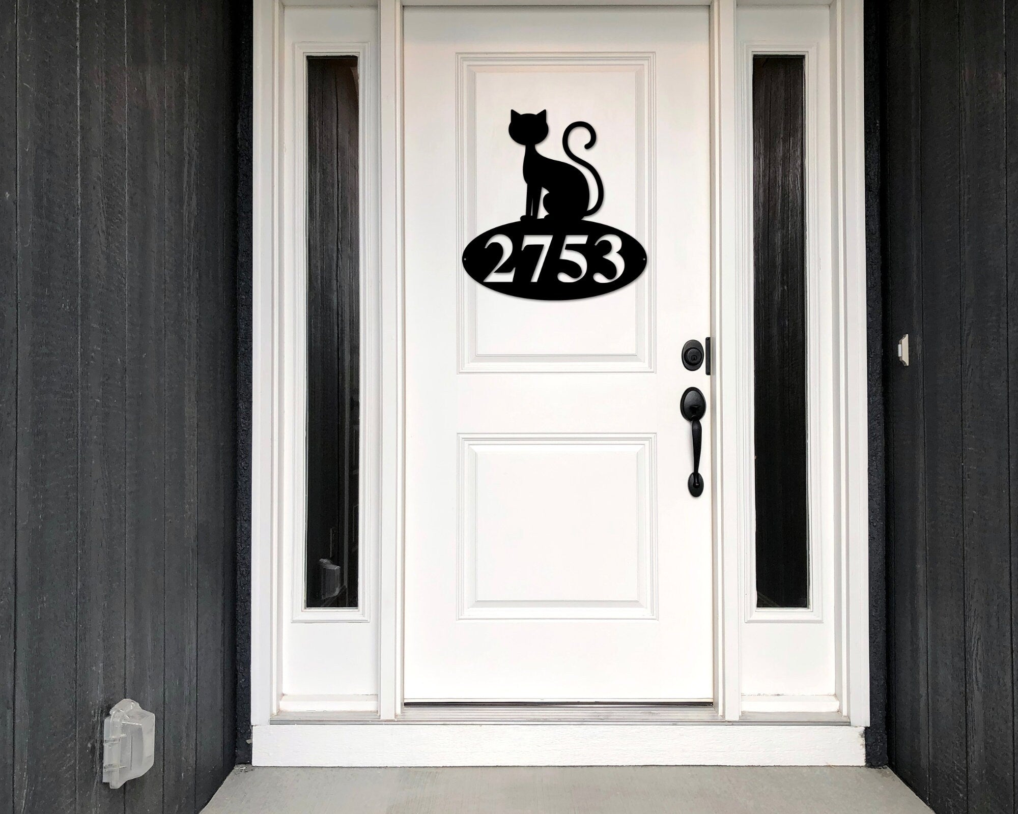 Halloween House Number Sign, Custom Halloween Address Sign, Black Cat Address Sign, Outdoor House Number ‐ Black / 6inch