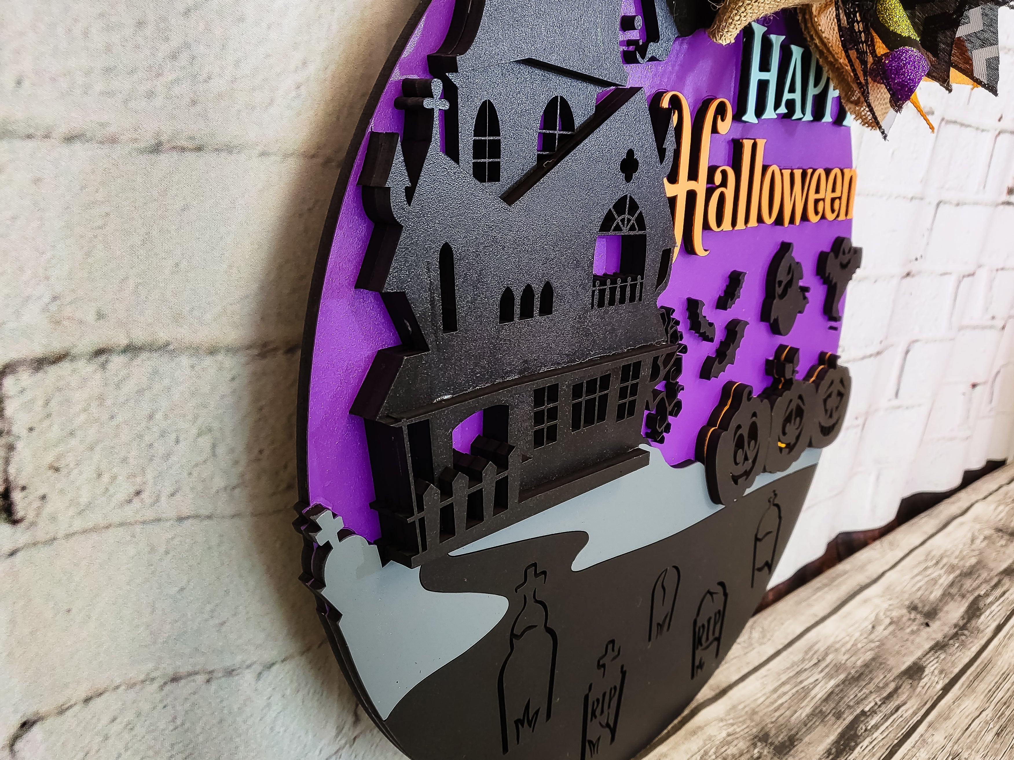 Happy Halloween Haunted Mansion Door Hanger - Finished