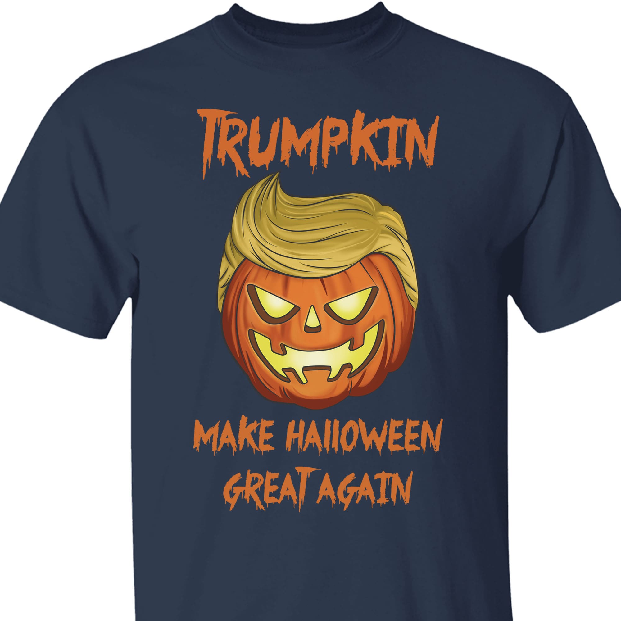 Trumpkin Make Halloween Great Again | Trump 2024 Shirt | Halloween Shirt | Trump Supporters Shirt Dark T1227 - GOP ‐ Basic Tee / Navy / M