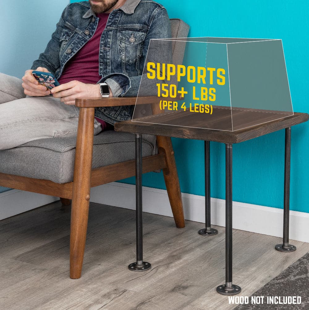 PIPE DECOR industrial table legs will add a touch of modern chic to any room in your house. Sturdy steel pipe easily supports the wooden tabletop of your choice. Use these pipe legs for coffee tables, TV stands, and end tables, or create your own unique shelving racks and other fun creations. The set comes with everything you will need to assemble the table legs, plus step-by-step illustrated instructions.