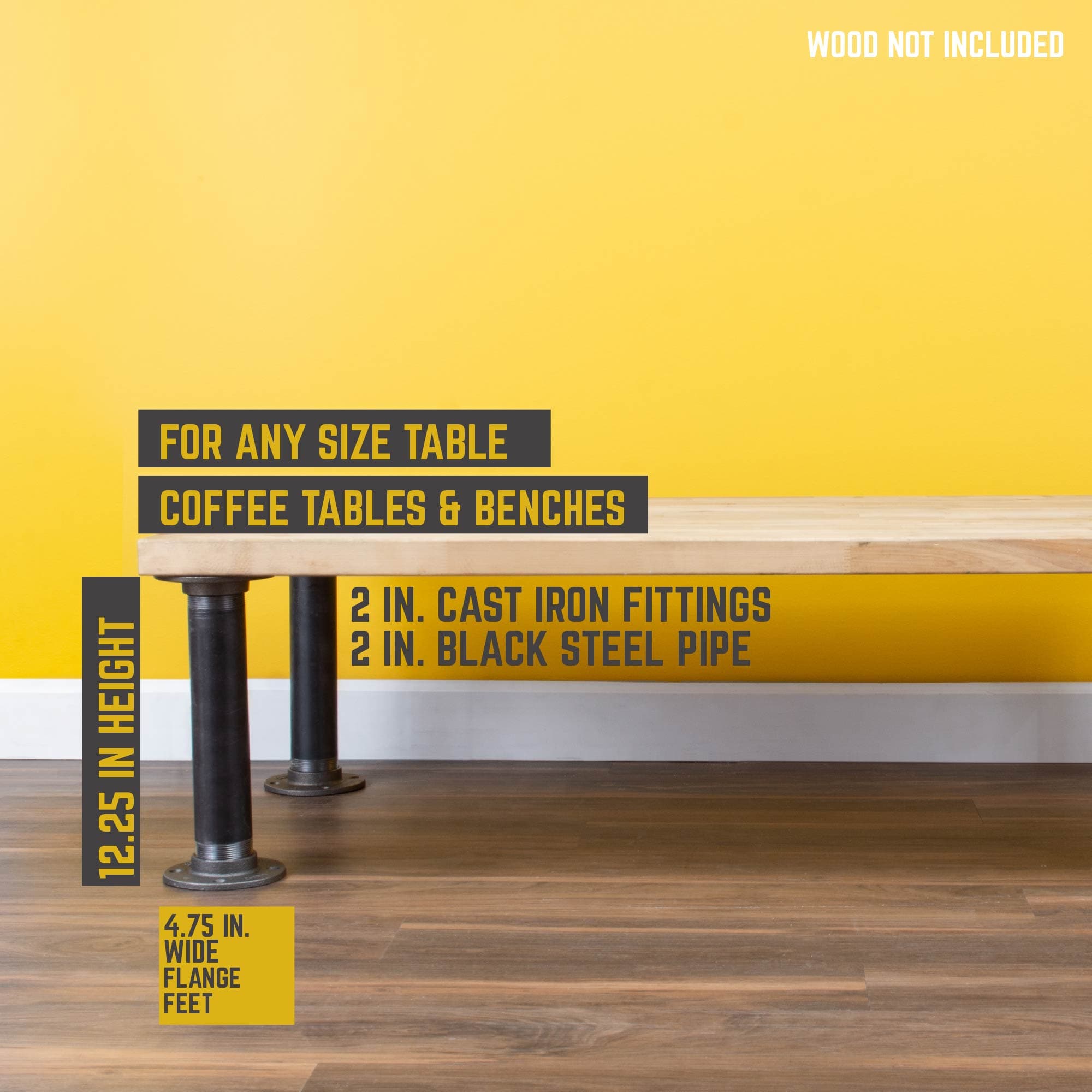 - Kit comes with (2) 2 in. x 12 in. pipe table legs, (4) 2 in. round flanges, (8) screws, instructions, and a clean and seal sheet