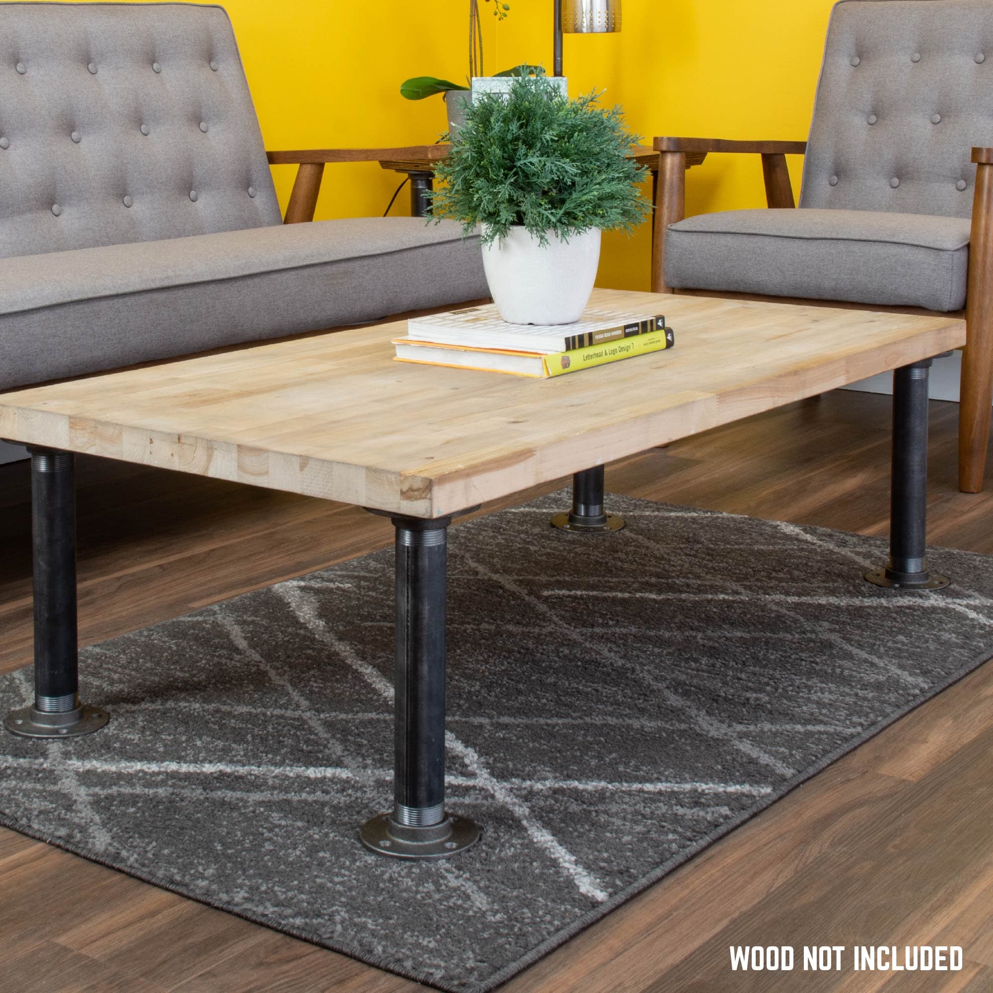 This is big beefy pipe! Use these extra heavy-duty pipe table legs for coffee tables and low-end tables, or create your own shelving, benches, and racks. 4-legs can support 300 lbs. For a complete table you will need two 2-packs. PIPE DECOR industrial table legs will add a touch of modern industrial chic to any room in your house. Sturdy steel pipe easily supports the wooden tabletop of your choice. The set comes with everything you will need to assemble the table legs, plus step-by-step illustrated instructions. You will know PIPE DECOR parts and accessories when you hold them. Beauty and beast. Strength and style. This is real industrial pipe for your creative design needs. Accept no substitutes. All our pipe and fittings come coated in a light industrial grease to prevent rusting. Clean and seal each piece, before assembly, to ensure that they stay rust-free. After cleaning, seal the pipe with polyurethane spray to protect it from rust and scratches.