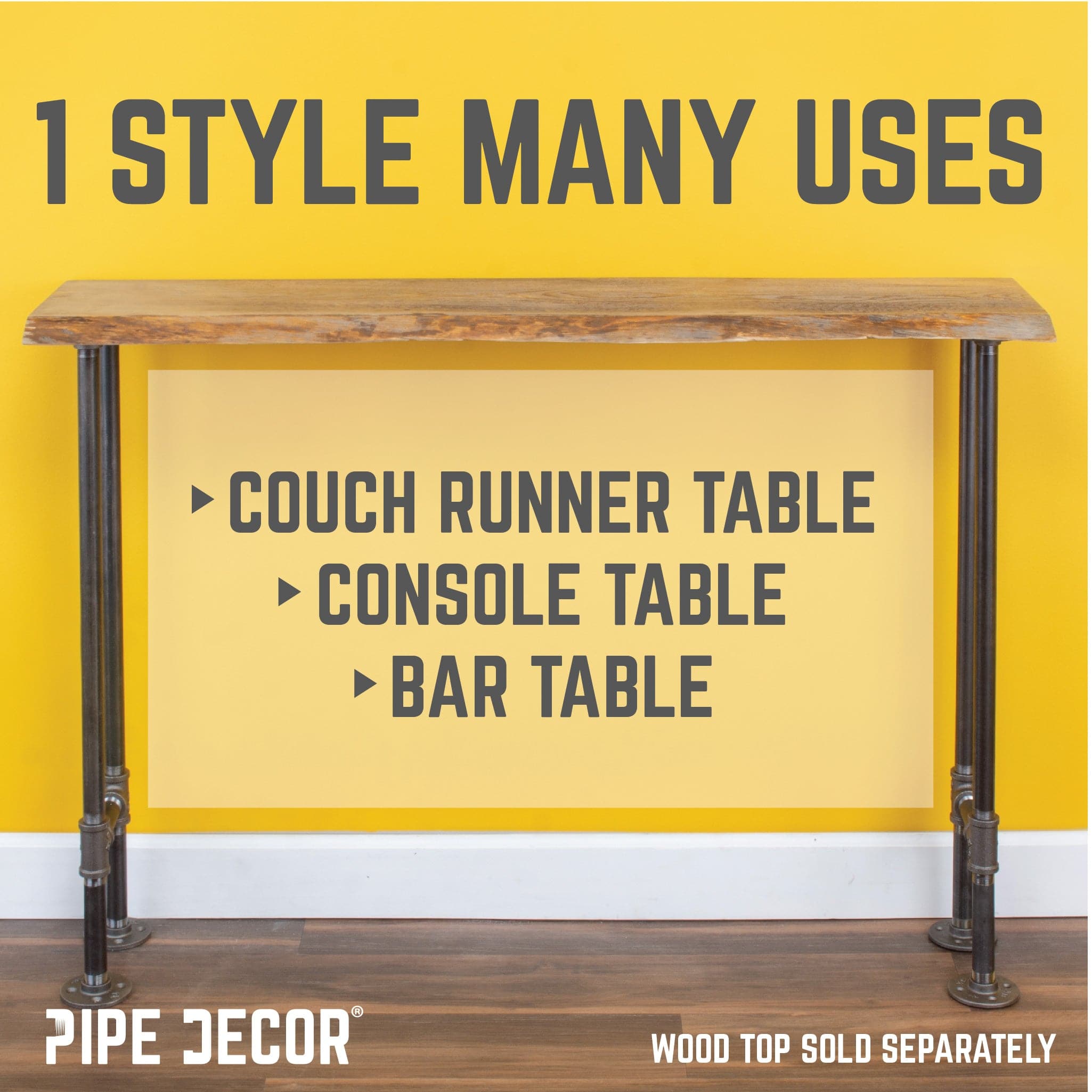 Use these pipe legs for entryway or console tables. PIPE DECOR industrial table legs will add a touch of modern industrial chic to any room in your house. Sturdy steel pipe easily supports the wooden tabletop of your choice. The set comes with everything you will need to assemble the table legs, plus step-by-step illustrated instructions. You will know PIPE DECOR parts and accessories when you hold them. Beauty and beast. Strength and style. This is real industrial pipe for your creative design needs. Accept no substitutes. All our pipe and fittings come coated in a light industrial grease to prevent rusting. Clean and seal each piece, before assembly, to ensure that they stay rust-free. After cleaning, seal the pipe with polyurethane spray to protect it from rust and scratches.