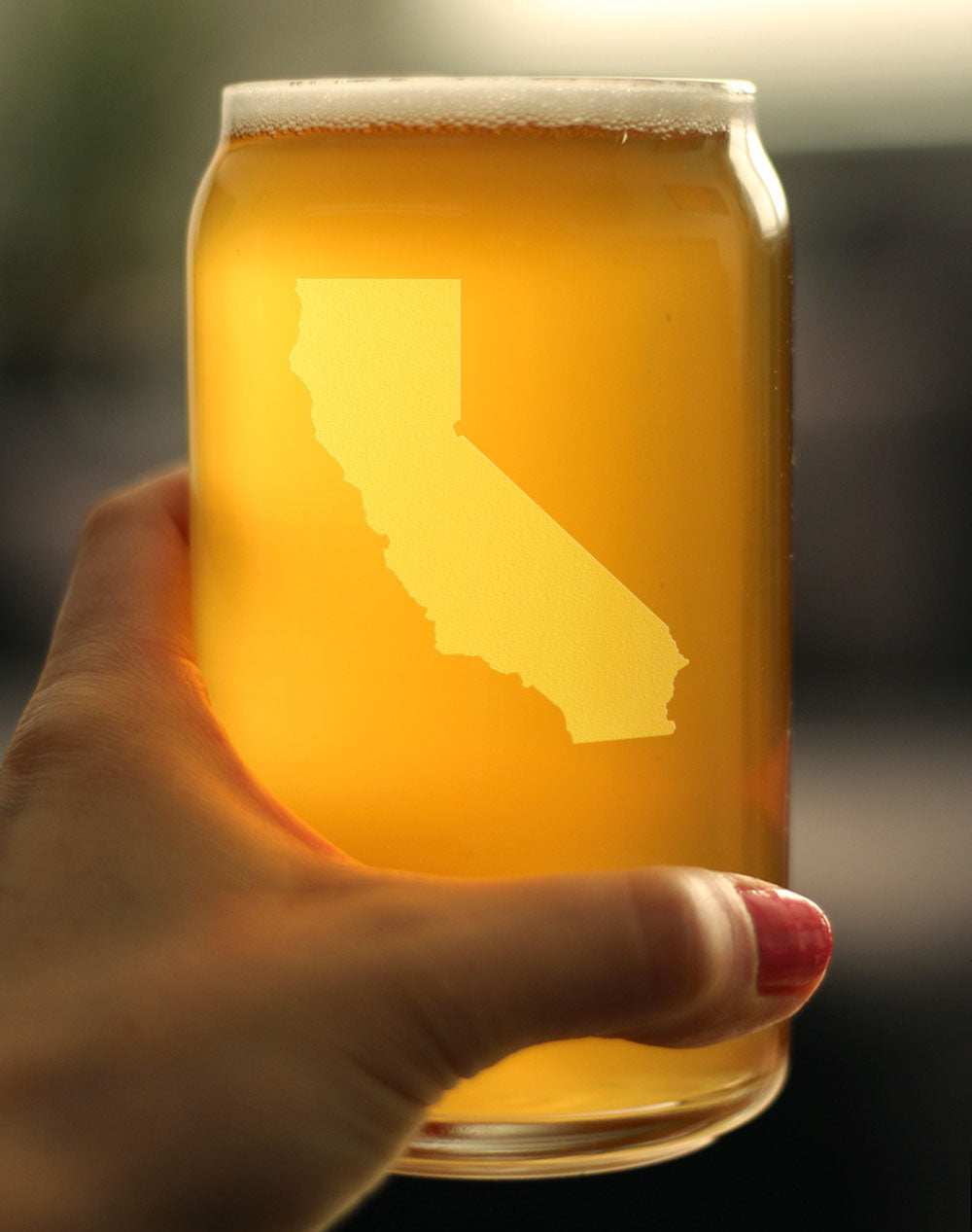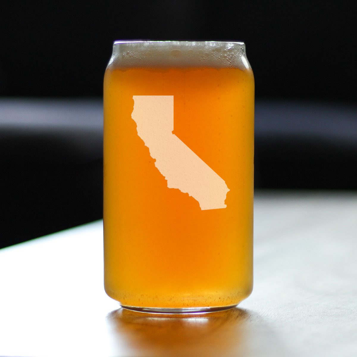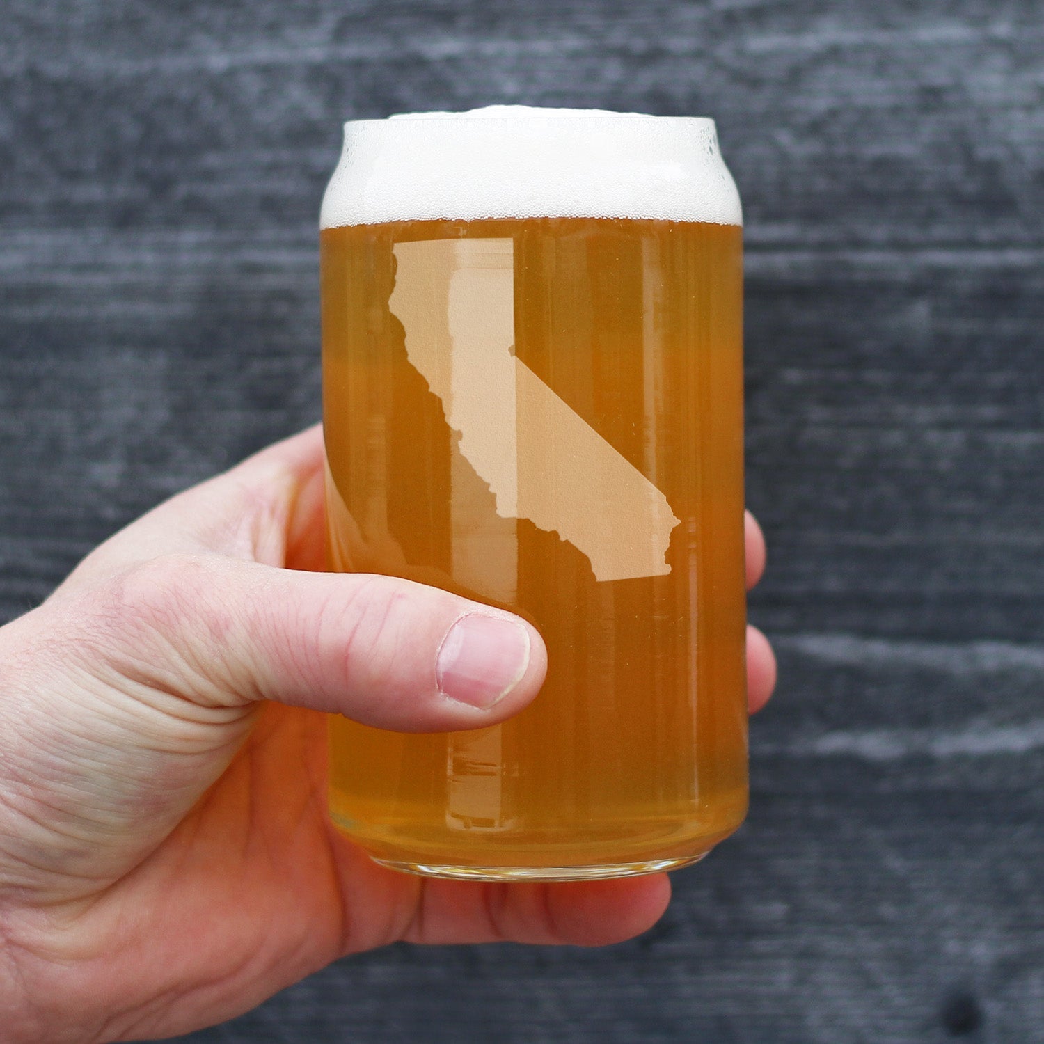 California State Outline Beer Can Pint Glass - State Themed Drinking Decor and Gifts for Californian Women & Men - 16 Oz Glasses