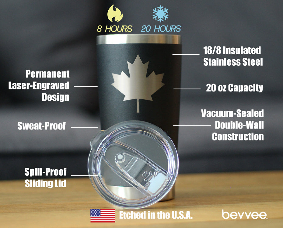 Canada Maple Leaf - Insulated Coffee Tumbler Cup with Sliding Lid - Stainless Steel Travel Mug - Canadian Flag Gifts and Decor for Women and Men