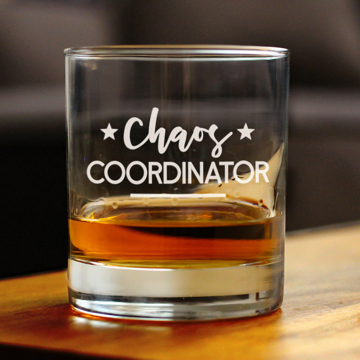 Chaos Coordinator - Whiskey Rocks Glass Gifts - Funny Gifts for Secretaries, Moms, and Teachers - 10.25 Oz Glasses